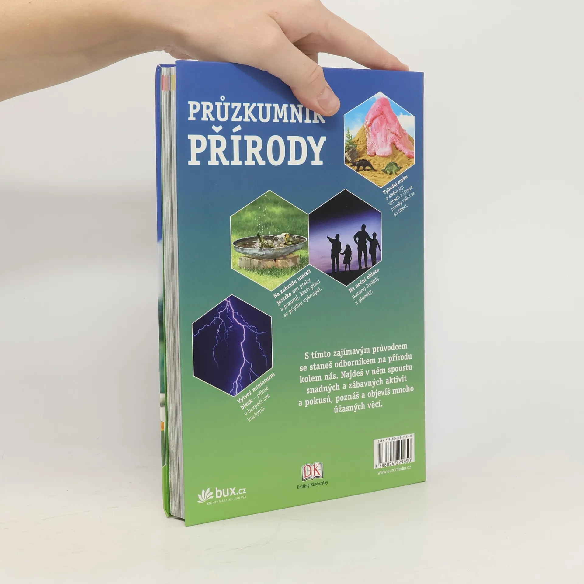 Knížka pro malé výzkumníky kolem 10 let nabízí pestrou paletu neotřelých nápadů, tipů a doporučení, jak zkoumat přírodu kolem nás – ptáky a brouky, stopy živočichů v přírodě. rostliny, houby, horniny a minerály, počasí, noční i denní oblohu. Ke každému tématu jsou uvedeny nezbytné pomůcky a postup práce, vždy je také vysvětlen princip pokusu. Kniha je poučná a zábavná zároveň, skvělý společník pro domácí i venkovní aktivity zvídavých dětí.
