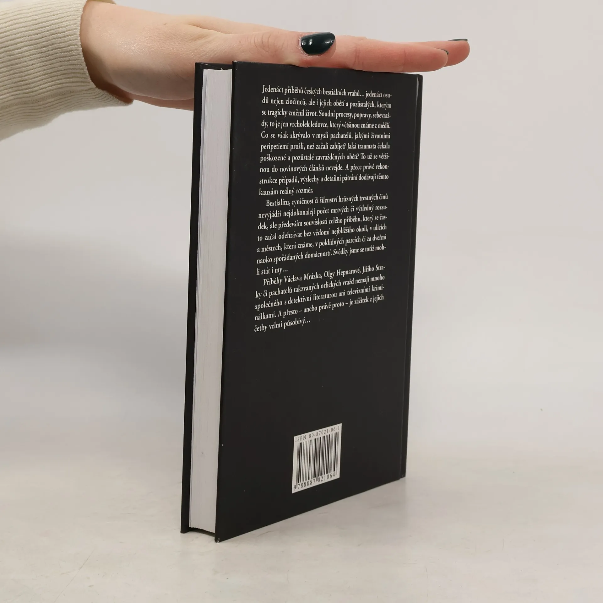 Jedenáct příběhů českých bestiálních vrahů... jedenáct osudů nejen zločinců, ale i jejich obětí a pozůstalých, kterým se tragicky změnil život. Soudní procesy, popravy, sebevraždy, to je jen vrcholek ledovce, který větŠinou známe z médií. Co se však skrývalo v mysli pachatelů, jakými životními peripetiemi prošli, než začali zabíjet? Jaká traumata čekala poškozené a pozůstalé zavražděných obětí? To už se většinou do novinových článků nevejde. A přece právě rekonstrukce případů, výslechy a detailní pátrání dodávají těmto kauzám reálný rozměr. Bestialitu, cyničnost či šílenství hrůzných trestných činů nevyjádří nejdokonaleji počet mrtvých či výsledný rozsudek, ale především souvislosti celého příběhu, který se často začal odehrávat bez vědomí nejbližšího okolí, v ulicích a městech, která známe, v poklidných parcích či za dveřmi naoko spořádaných domácností. Svědky jsme se totiž mohli stát i my... Příběhy Václava Mrázka, Olgy Hepnarové, Jiřího Straky či pachatelů takzvaných orlických vražd nemají mnoho společného s detektivní literaturou ani televizními kriminálkami. A přesto - anebo právě proto - je zážitek z jejich četby velmi působivý...