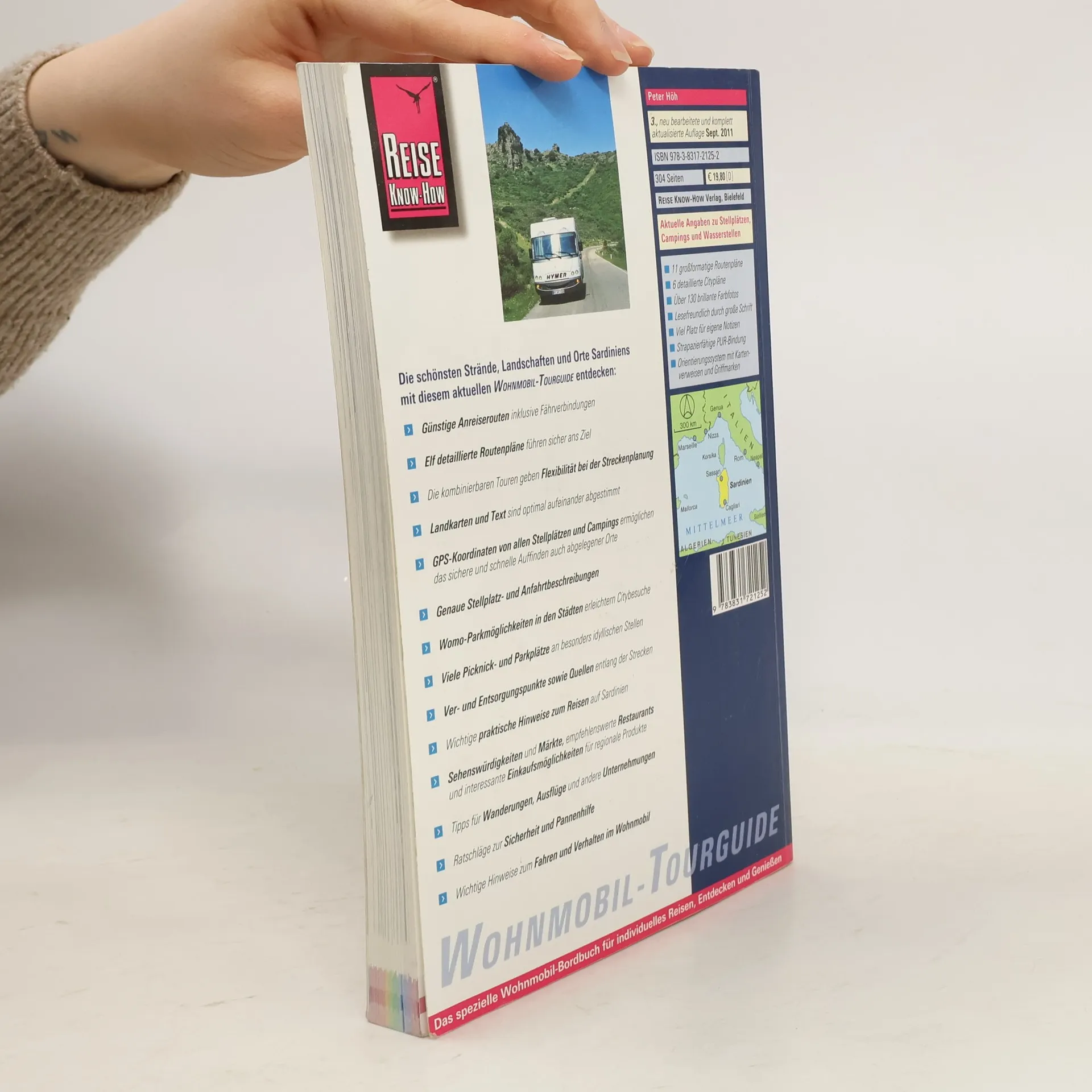 Dieser Reiseführer für Wohnmobilisten bietet die gesammelten Erfahrungen des Sardinienkenners und Reisejournalisten Peter Höh, der die Insel seit Jahren mit dem Wohnmobil erkundet. Sieben detaillierte Touren führen zu den bekannten und unbekannten Schönheiten Sardiniens. Nützliche Informationen zu Park-, Camping- und Stellplätzen werden ergänzt durch Tipps, wo man Inselspezialitäten und authentisches Kunsthandwerk direkt beim Hersteller findet, welche Locanda die beste Küche bietet und wo die schönsten Strände liegen. Der Wohnmobil-Tourguides enthält umfassende Informationen zur Reisevorbereitung, günstige Anreiserouten mit Fährverbindungen, übersichtliche Karten und Routenpläne, sowie Details zu Park-, Camping- und Stellplätzen inklusive GPS-Daten. Ver- und Entsorgungsstellen, idyllische Picknick-Plätze und Parkmöglichkeiten für Stadtbesuche sind ebenfalls aufgeführt. Weitere Tipps umfassen Wanderungen, Sehenswürdigkeiten, Märkte, Restaurants und Einkaufsmöglichkeiten. Zudem gibt es Hinweise zum Fahren mit dem Wohnmobil auf Sardinien, Ratschläge zur Sicherheit und Unfallhilfe. Der Guide ist lesefreundlich gestaltet und enthält eine kleine Sprachhilfe Italienisch-Deutsch mit den wichtigsten Wörtern rund ums Wohnmobil.