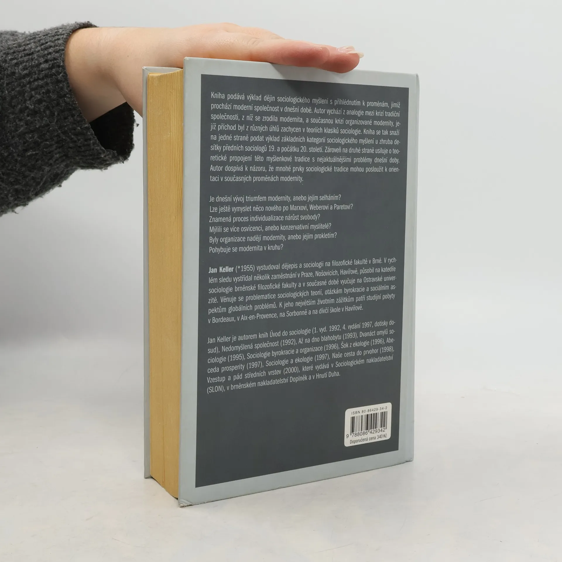 Kniha podává výklad učení sociologů 19. a počátku 20. století z perspektivy změn, jimiž prochází moderní společnost v současné době. Autor vychází z analogie mezi krizí tradiční společnosti, z níž se zrodila modernita, a dnešní krizí organizované modernity, jejíž příchod byl z různých úhlů zachycen v teoriích klasiků sociologie. Snaží se tak na jedné straně podat výklad základních kategorií sociologického myšlení u zhruba desítky předních sociologů 19. a počátku 20. století, na druhé straně pak usiluje o teoretické propojení této myšlenkové tradice s nejaktuálnějšími problémy dnešní doby. Autor dospívá k přesvědčení, že mnohé prvky sociologické tradice mohou posloužit k orientaci v proměnách, jimiž prochází modernita v současné době. Kniha bude doplněna rozsáhlými biografickými a bibliografickými přílohami.