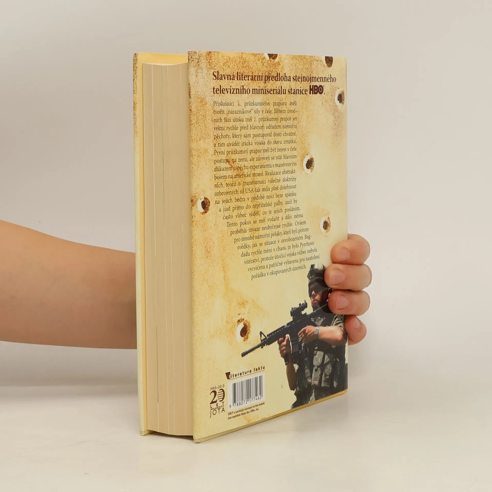 Slavná literární předloha úspěšného televizního seriálu stanice HBO, který si našel mnoho příznivců i mezi českými diváky… U zrodu knihy, jež se ve Spojených státech stala událostí, bylo odhodlání amerického novináře Evana Wrighta účastnit se invaze do Iráku v roce 2003 po boku příslušníků průzkumného praporu námořní pěchoty USA. Jako válečný reportér s nimi v první linii prodělal strastiplnou cestu až do Bagdádu. Nejdříve v článcích pro časopis Rolling Stone a později v této knize podal pronikavé svědectví o nové podobě bleskové války i o mariňácích, kteří v ní nasazovali své životy. Píše o nich zároveň s obdivem i se syrovou otevřeností. Fascinuje ho jejich odhodlání, zdatnost, smysl pro kamarádskou solidaritu, ale vnímá také jejich opuštěnost, nezralost i brutalitu.