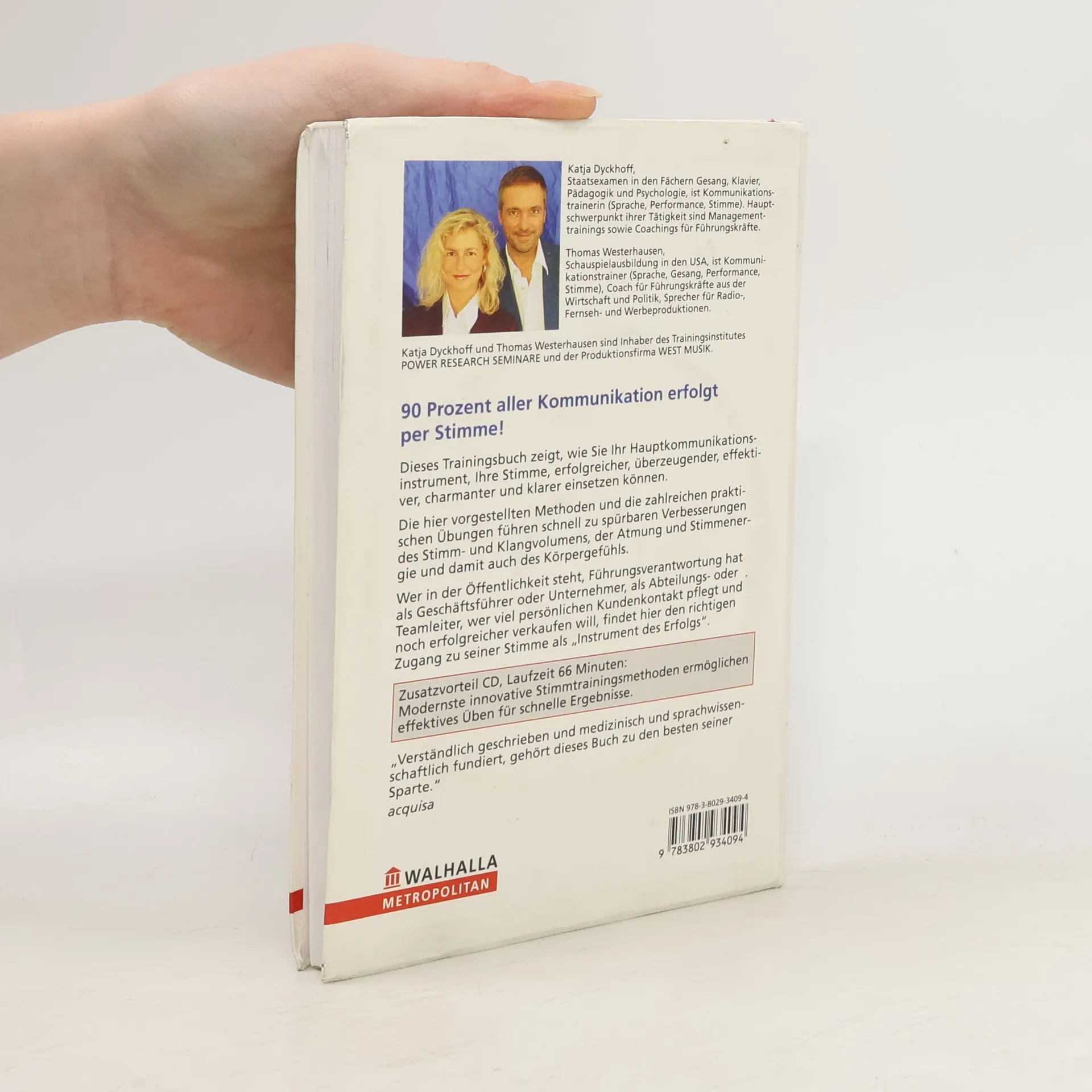 90 Prozent aller Kommunikation erfolgt per Stimme! Dieses Trainingsbuch zeigt, wie Sie Ihr Hauptkommunikationsinstrument, Ihre Stimme, erfolgreicher, überzeugender, effektiver, charmanter und klarer einsetzen können. Die hier vorgestellten Methoden und die zahlreichen praktischen Übungen führen schnell zu spürbaren Verbesserungen des Stimm- und Klangvolumens, der Atmung und Stimmenergie und damit auch des Körpergefühls. Wer in der Öffentlichkeit steht, Führungsverantwortung hat als Geschäftsführer oder Unternehmer, als Abteilungs- oder Teamleiter, wer viel persönlichen Kundenkontakt pflegt und noch erfolgreicher verkaufen will, findet hier den richtigen Zugang zu seiner Stimme als "Instrument des Erfolgs".