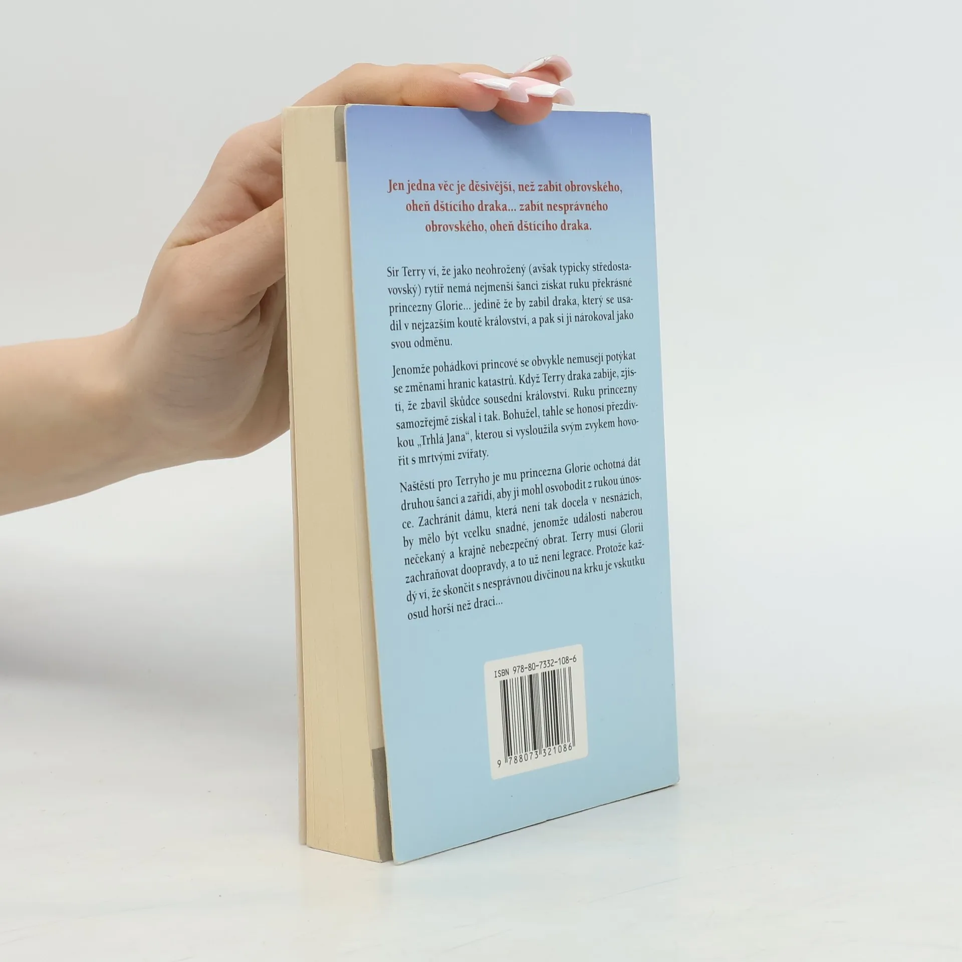 Jen jedna věc je děsivější, než zabít obrovského, oheň dštícího draka... zabít nesprávného obrovského, oheň dštícího draka. Sir Terry ví, že jako neohrožený (avšak typicky středostavovský) rytíř nemá nejmenší šanci získat ruku překrásné princezny Glorie... jedině že by zabil draka, který se usadil v nejzazším koutě království, a pak si ji nárokoval jako svou odměnu. Jenomže pohádkoví princové se obvykle nemusejí potýkat se změnami hranic katastrů. Když Terry draka zabije, zjistí, že zbavil škůdce sousední království. Ruku princezny samozřejmě získal i tak. Bohužel, tahle se honosí přezdívkou „Trhlá Jana", kterou si vysloužila svým zvykem hovořit s mrtvými zvířaty. Naštěstí pro Terryho je mu princezna Glorie ochotná dát druhou šanci a zařídí, aby ji mohl osvobodit z rukou únosce. Zachránit dámu, která není tak docela v nesnázích, by mělo být vcelku snadné, jenomže události naberou nečekaný a krajně nebezpečný obrat. Terry musí Glorii zachraňovat doopravdy, a to už není legrace. Protože každý ví, že skončit s nesprávnou dívčinou na krku je vskutku osud horší než draci...