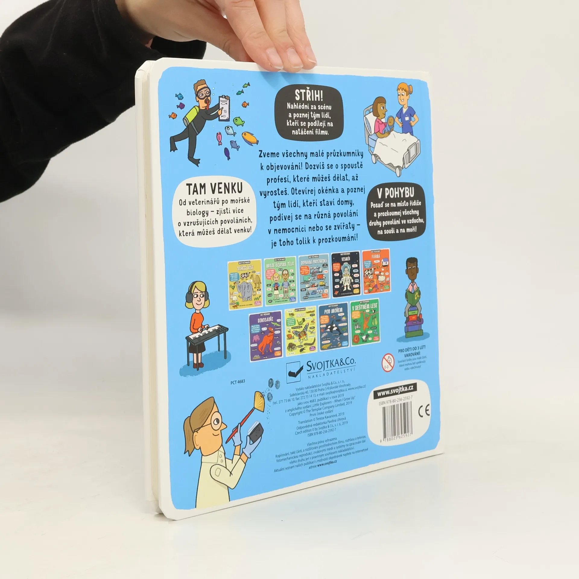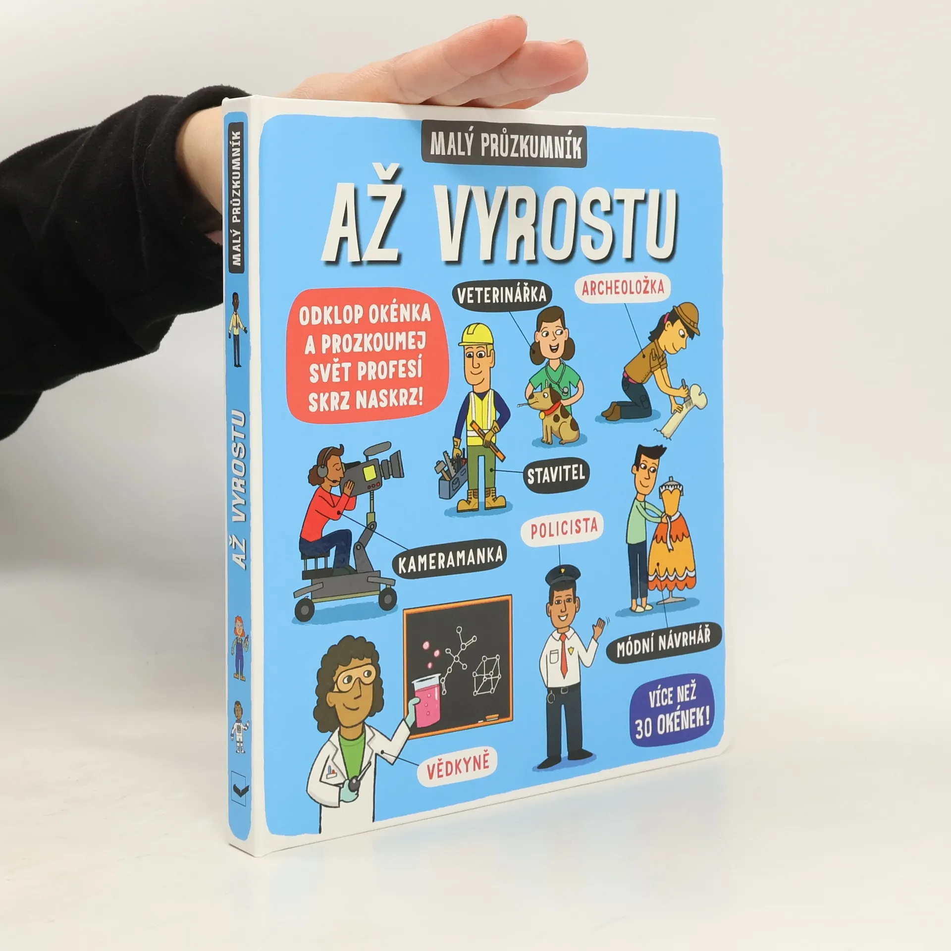 Sportuješ často, máš uměleckou duši, staráš se o zraněná zvířata nebo tě baví cestovat a trávit čas venku? Existuje spousta povolání, při kterých můžeš uplatnit to, co ti jde nejlépe! Odklápěj okénka a podívej se zblízka na nejrůznější profese. V knize najdeš několik oblastí, v nichž můžeš v dospělosti vynikat. Jestli tě baví stavět stavebnice, jednou třeba budeš stavět skutečné domy! Trávíš hodně času v kuchyni a pomáháš rodičům s přípravou jídla? Jednou se můžeš stát šéfkuchařem a vařit každý den pro ostatní lidi. Sníš o tom, že budeš řídit vlak, autobus, nebo dokonce letadlo? Nebo tě baví trávit hodiny venku zkoumáním přírody a focením? Zjisti, kým můžeš jednou být, až vyrosteš.
