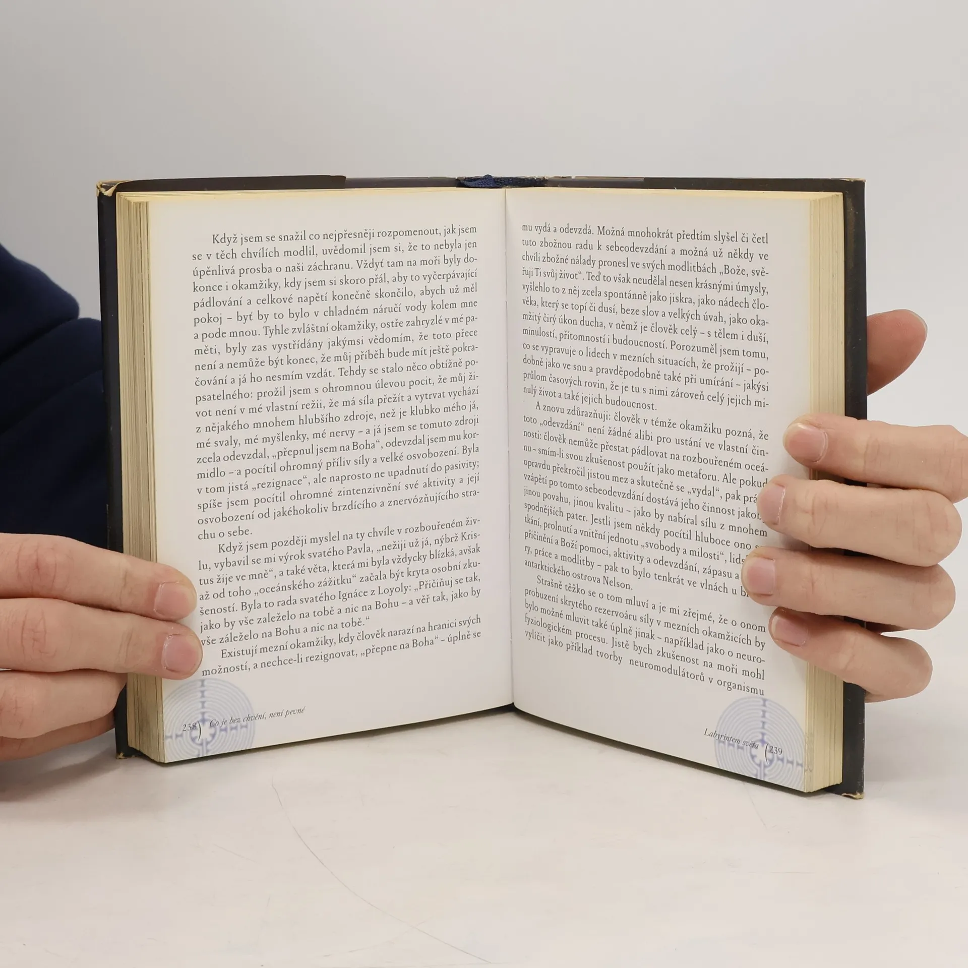 Zkušenosti z cest po všech šesti kontinentech Země i z hledání vlastního místa v náboženském a občansko-politickém životě jsou autorovi východiskem pro čtrnáct úvah o stěžejních duchovních a civilizačních problémech naší doby. Na cestě labyrintem dnešního světa, labyrintem vlastního osudu i labyrintem soudobého filozofického a náboženského myšlení autor rozvíjí trvalý dialog víry a pochybnosti jako dvou sester, které se vzájemně potřebují a doplňují.