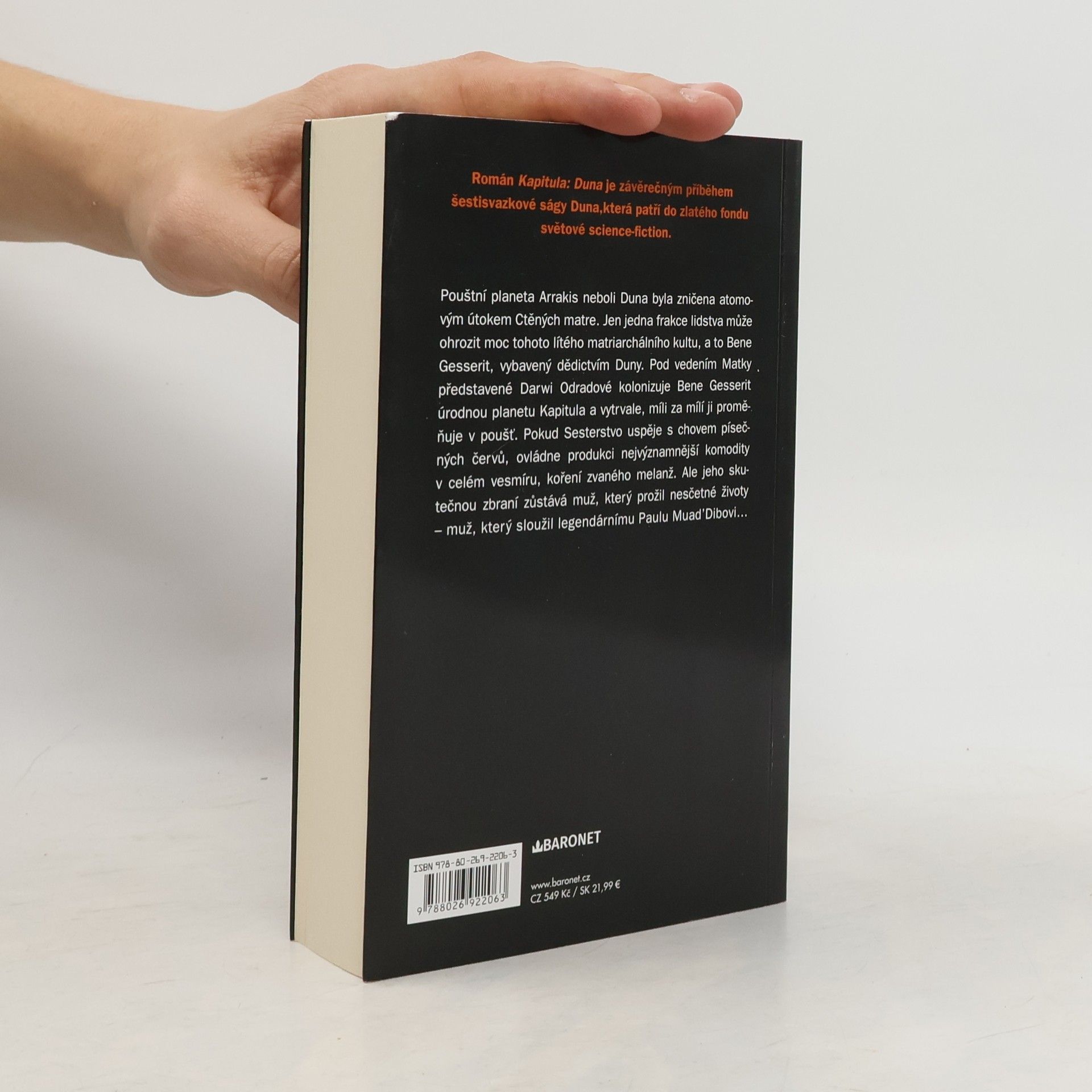Kapitula: Duna - retro vydání. Šestý díl světoznámé série! Pouštní planeta Arrakis byla zničena. Pod vedením Matky představené Darwi Odradové kolonizuje Bene Gesserit úrodnou planetu. Pokud Sesterstvo uspěje s chovem písečných červů, ovládne produkci nejvýznamnější komodity v celém vesmíru, koření zvaného melanž. Ale jeho skutečnou zbraní zůstává muž, který prožil nesčetné životy – muž, který sloužil legendárnímu Paulu Muad’Dibovi…