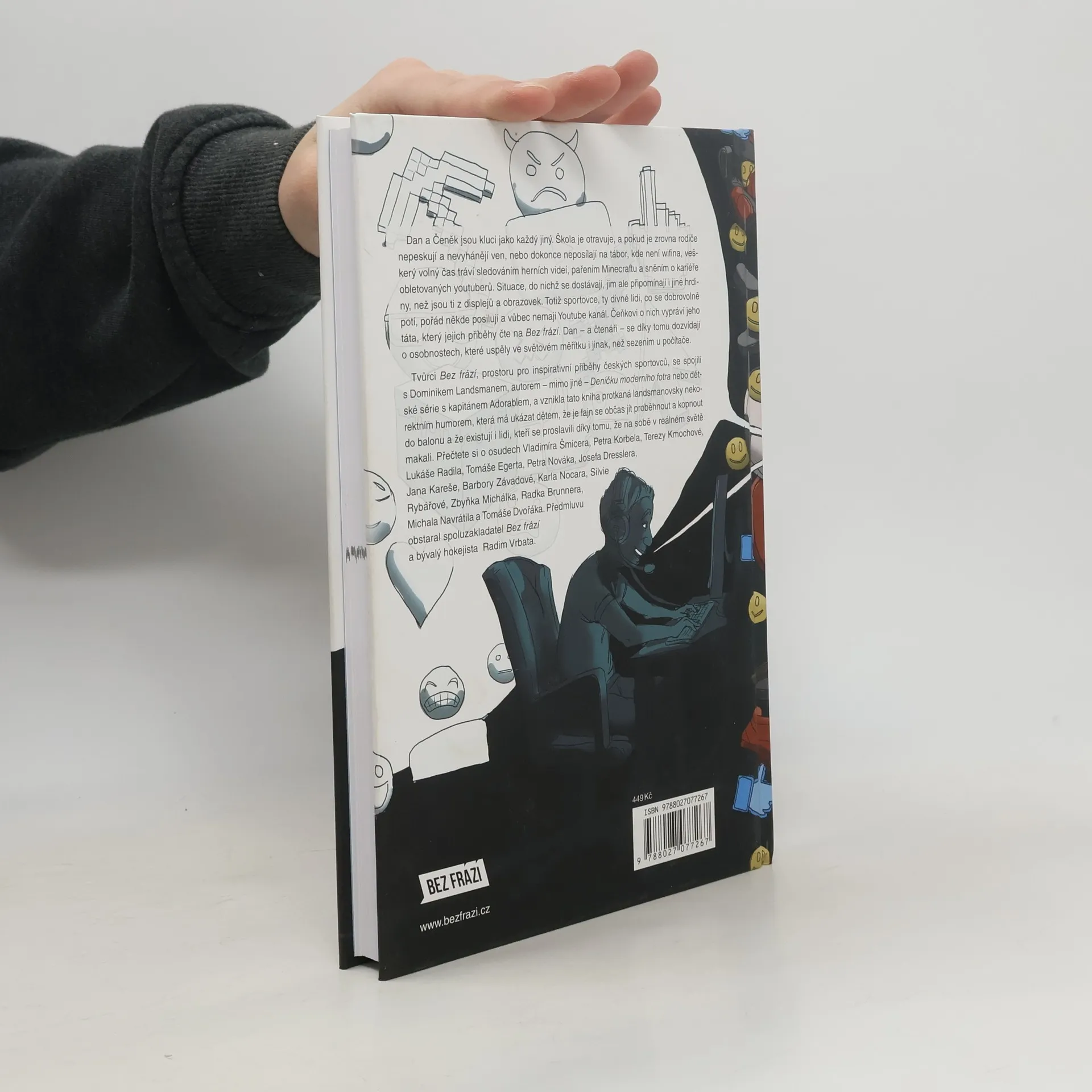 Příběhy Bez frází pro děti přinášejí osudy výjimečných českých sportovců, které vypráví oblíbený spisovatel Dominik Landsman tak, aby jim rozuměli i školáci. Hlavní postavy, Dan a Čeněk, jsou kluci, kteří se potýkají s nudou ve škole, a když je rodiče nevyhánějí ven, tráví čas sledováním herních videí a sněním o kariéře youtuberů. Čeněk se ale dozvídá o sportovcích, kteří se snaží uspět v reálném světě, a to mu pomáhá pochopit, že existují i jiní hrdinové než ti z obrazovek. Kniha, plná Landsmanova nekorektního humoru, ukazuje dětem, že je důležité občas se hýbat a usilovat o své sny. Bez frází spojilo síly s Dominikem Landsmanem a výsledkem je dílo, které motivuje k aktivnímu životnímu stylu. Formát „klasických“ Bez frází zahrnuje 210 stran, na kterých Dan a Čeněk řeší příběhy sportovců jako Vladimír Šmicera, Petr Korbel, Tereza Kmochová a další. Předmluvu napsal spoluzakladatel Bez frází Radim Vrbata. Kniha je určena pro děti, které se chtějí inspirovat úspěchy sportovců a naučit se, že tvrdá práce a odhodlání mohou vést k úspěchu.