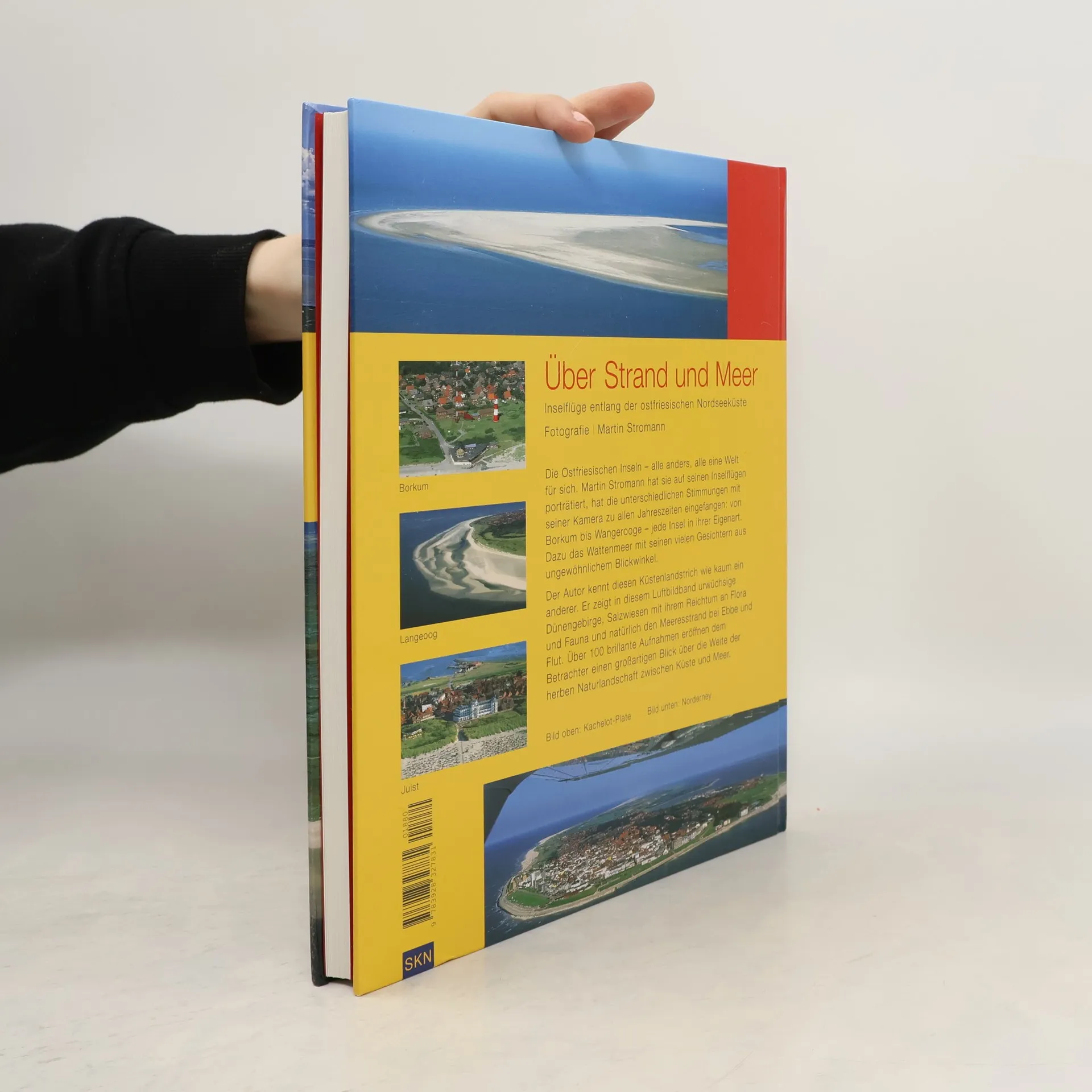 Über Strand und Meer Inselflüge entlang der ostfriesischen Nordseeküste Fotografie: Martin Stromann Die Ostfriesischen Inseln – alle anders, alle eine Welt für sich. Martin Stromann hat sie auf seinen Inselflügen porträtiert, hat die unterschiedlichen Stimmungen mit seiner Kamera zu allen Jahreszeiten eingefangen. Von Borkum bis Wangerooge – jede Insel in ihrer Eigenart. Dazu das Wattenmeer mit seinen vielen Gesichtern aus ungewöhnlichem Blickwinkel. Der Autor kennt diesen Küstenlandstrich wie kaum ein anderer. Er zeigt in diesem Luftbildband urwüchsige Dünengebirge, Salzwiesen mit ihrem Reichtum an Flora und Fauna und natürlich den Meeresstrand bei Ebbe und Flut. Über 100 brillante Aufnahmen eröffnen dem Betrachter einen großartigen Blick über die Weite der herben Naturlandschaft zwischen Küste und Meer.