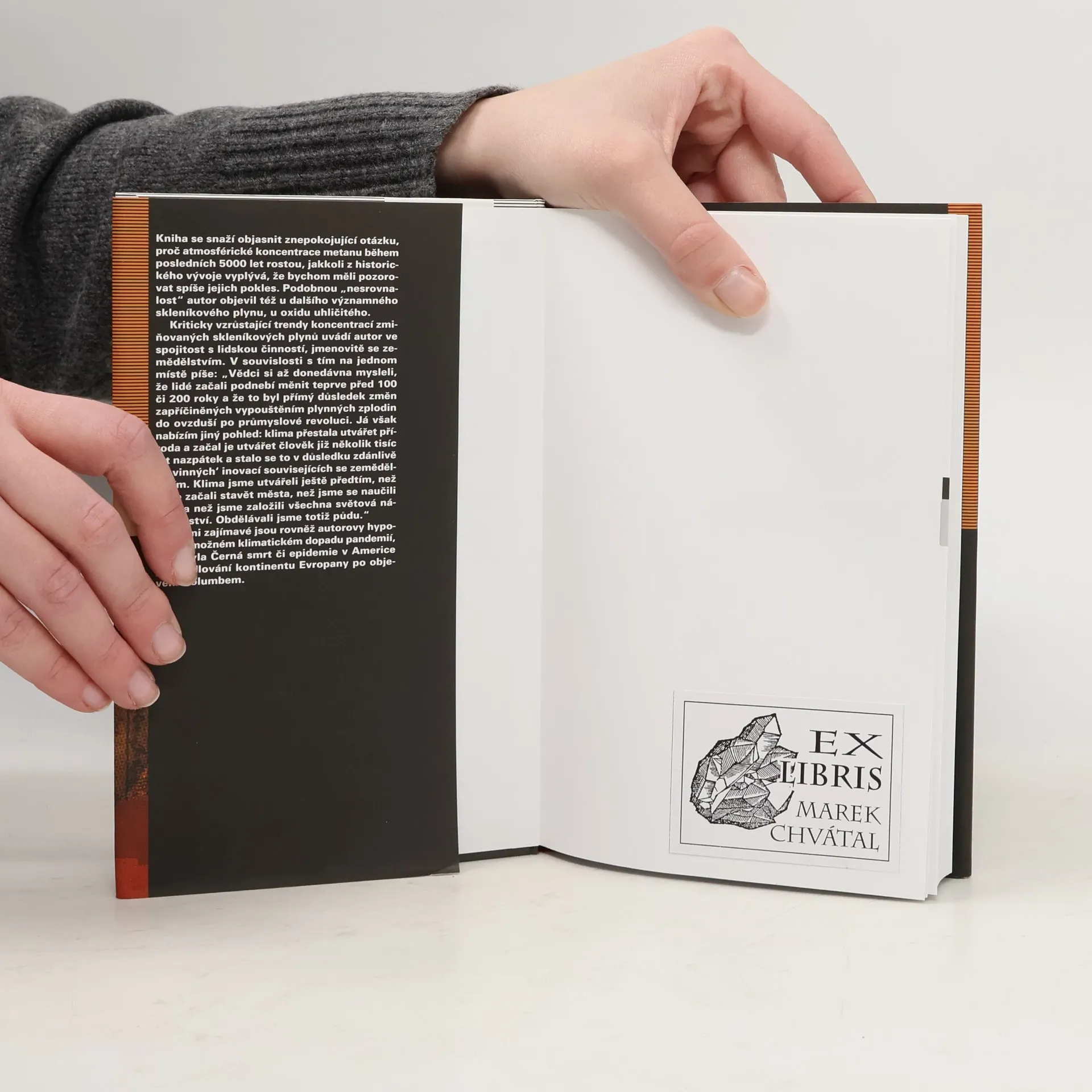 Autor v hutné zkratce popisuje vliv člověka na krajinu a životní prostředí. Ovšem nikoliv od průmyslové revoluce, ale od zemědělské revoluce v neolitu. Dozvíte se, jak zemědělci zabránili vzniku menšího zalednění v Kanadě, nebo třeba jak pěstování rýže vydatně vyrábí do atmosféry metan. Je to o tom, jak už na prahu železné doby došlo k odlesnění Evropy, Číny či jak epidemie moru či vymření 90% původních obyvatel po objevení Ameriky ovlivnilo klima. Autor na závěr knihy popisuje prognózu dalšího vývoje. Není to zrovna veselé čtení. Ale vyvolává otázky. Není už ksakru načase začít měnit naše zvyklosti, začít nutit pány politiky, bankéře a další z vrcholu společnosti, aby udali směr vývoje společnosti trochu jinam, než k plýtvání? A hlavně sami začali jít příkladem, neboť už celá staletí je známo, že ti prosťáčci dole pány napodobují?