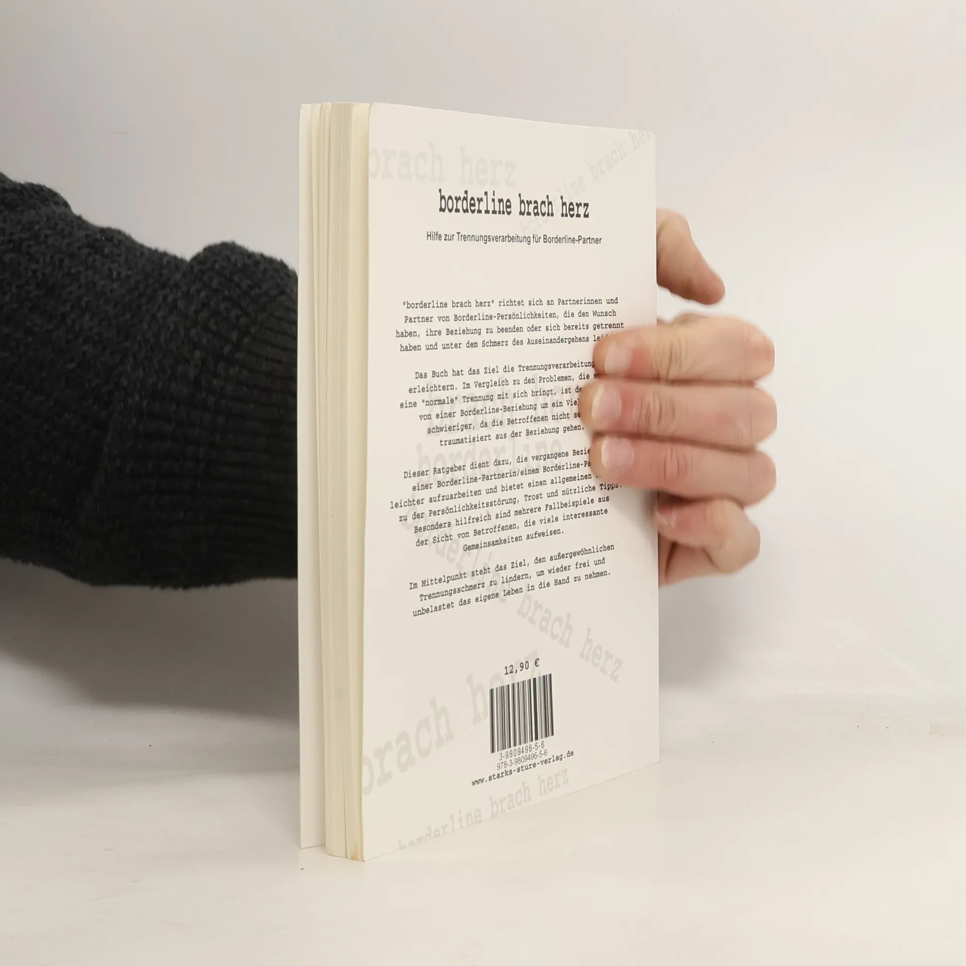 „borderline brach herz“ richtet sich an Partnerinnen und Partner von Borderline-Persönlichkeiten, die den Wunsch haben, ihre Beziehung zu beenden oder sich bereits getrennt haben und unter dem Schmerz des Auseinandergehens leiden. Das Buch hat das Ziel die Trennungsverarbeitung zu erleichtern. Im Vergleich zu den Problemen, die schon eine „normale“ Trennung mit sich bringt, ist der Abschied von einer Borderline-Beziehung um ein Vielfaches schwieriger, da die Betroffenen nicht selten traumatisiert aus der Beziehung gehen. Dieser Ratgeber dient dazu, die vergangene Beziehung zu einer Borderline-Partnerin/zu einem Borderline-Partner leichter aufzuarbeiten und bietet einen allgemeinen Überblick zu der Persönlichkeitsstörung, Trost und nützliche Tipps. Besonders hilfreich sind mehrere Fallbeispiele aus der Sicht von Betroffenen, die viele interessante Gemeinsamkeiten aufweisen. Im Mittelpunkt steht das Ziel, den außergewöhnlichen Trennungsschmerz zu lindern, um wieder frei und unbelastet das eigene Leben in die Hand zu nehmen.
