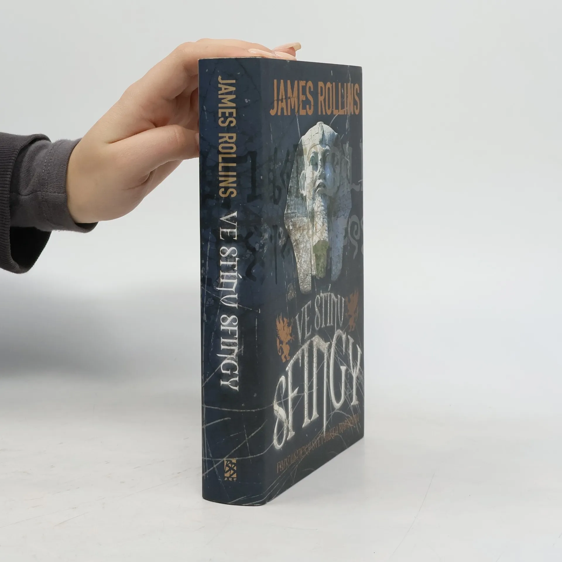 Ve stínu sfingy je druhý román série Jake Ransom. Autorem je mistr dobrodružných thrillerů James Rollins. Pomocí hodinek svého otce se Jake Ransom snaží vrátit do Kalypsa, což je město na prapevnině Pangaea. Rozhodl se zjistit, zda jsou jeho rodiče mrtví nebo se ztratili někde v čase. Je si jistý, že klíčem k tajemství zmizení rodičů je nápis uvnitř hodinek. Místo do Kalypsa je však vržen do podivné pouštní země. Tam se k němu přidávají mayská dívka Marika, římský chlapec Pandor, Bach´uuk a také Jakeova sestra Kady. Jsou ovšem zajati krásnou mladou princeznou Nefertiti. Také ona se musí brzy bránit posluhovačům Krále lebek. Jake má u sebe předmět, který král touží vlastnit více než cokoli jiného. Je to věc, která dává majiteli obrovskou moc a kontrolu nad děsivou Kvílející sfingou. Začíná závod s časem, Král lebek nesmí vyhrát. Kdyby se tak stalo, nic na světě ho nezastaví.