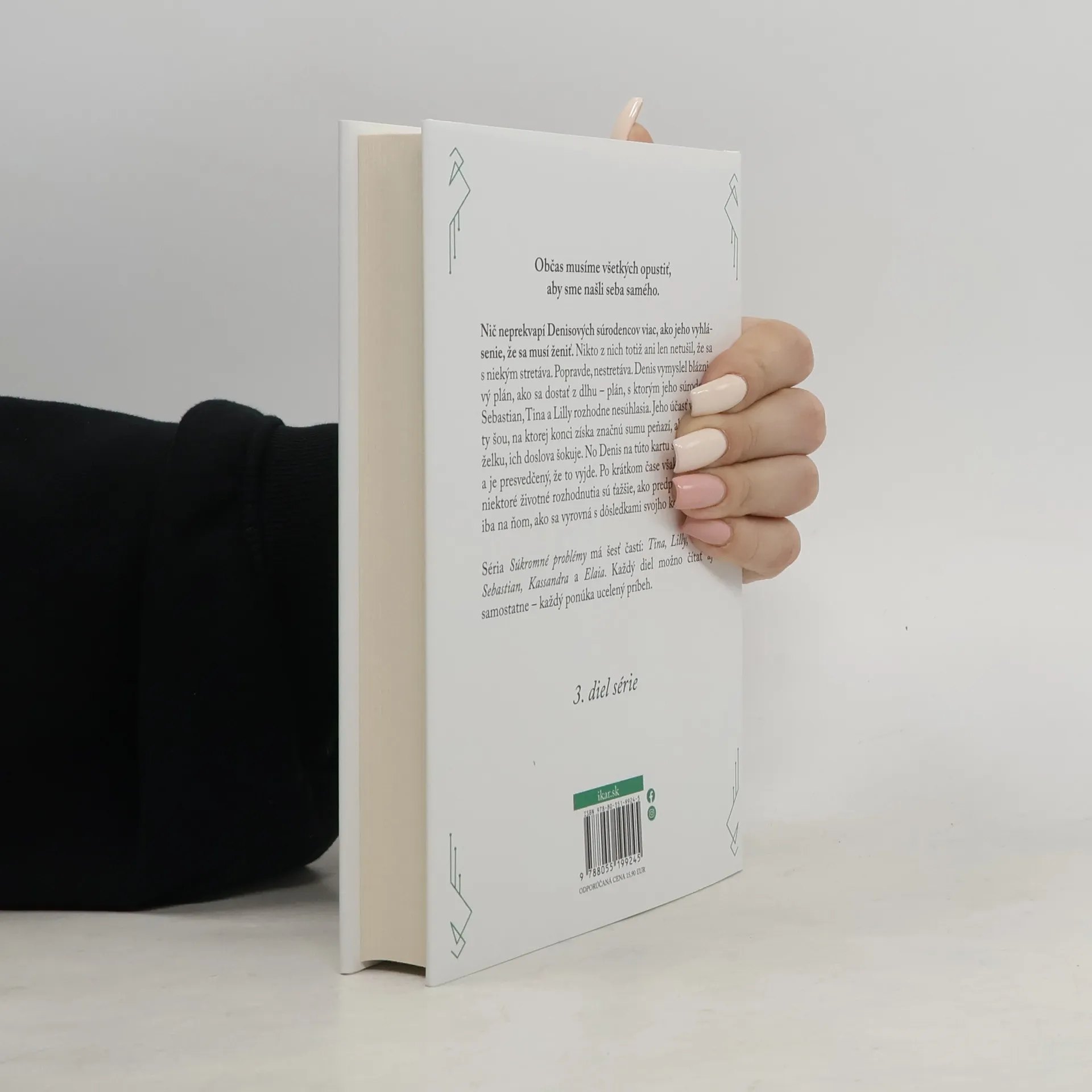 Občas musíme všetkých opustiť, aby sme našli seba samého. Nič neprekvapí Denisových súrodencov viac, ako jeho vyhlásenie, že sa musí ženiť. Nikto z nich totiž ani len netušil, že sa s niekým stretáva. Popravde, nestretáva. Denis vymyslel bláznivý plán, ako sa dostať z dlhu – plán, sktorým jeho súrodenci Sebastian, Tina a Lilly rozhodne nesúhlasia. Jeho účasť v reality šou, na ktorej konci získa značnú sumu peňazí, ale aj manželku, ich doslova šokuje. No Denis na túto kartu stavil všetko a je presvedčený, že to vyjde. Po krátkom čase však zisťuje, že niektoré životné rozhodnutia sú ťažšie, ako predpokladal, a je iba na ňom, ako sa vyrovná s dôsledkami svojho konania. Séria Súkromné problémy má šesť častí: Tina, Lilly, Denis, Sebastian, Kassandra a Elaia. Každý diel možno čítať aj samostatne – každý ponúka ucelený príbeh.