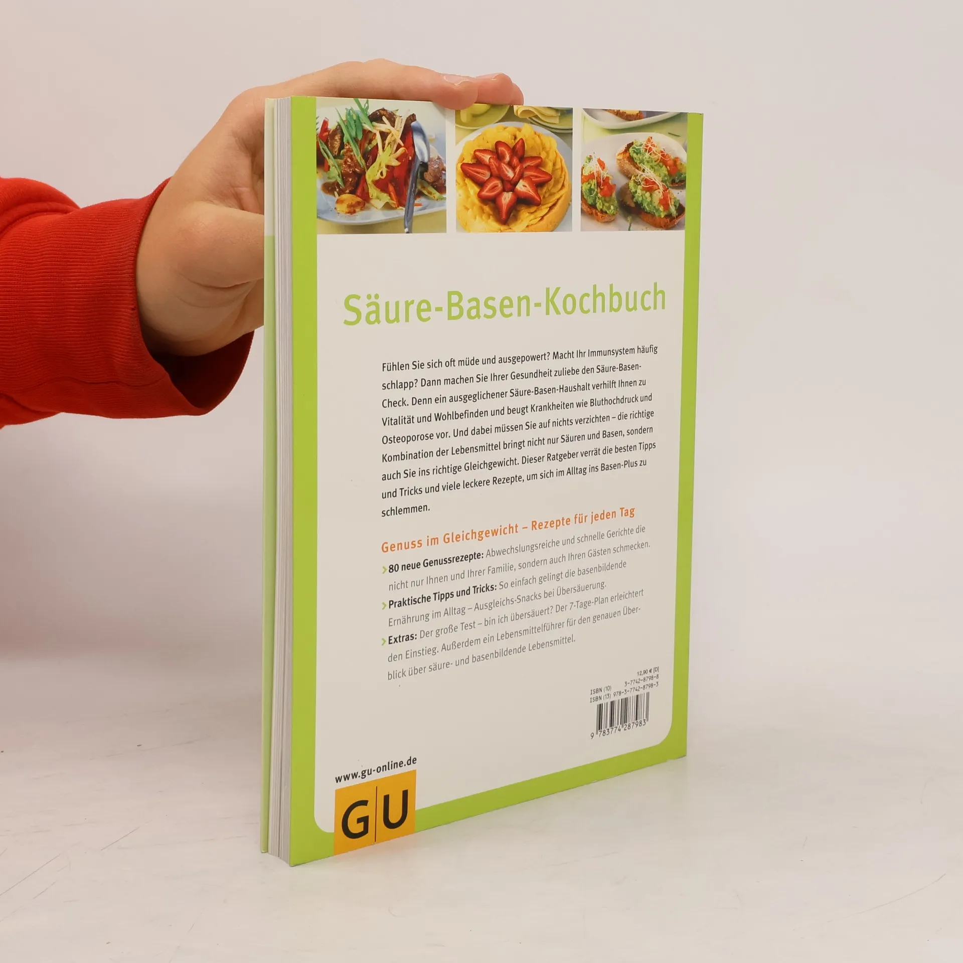 Ein ausgeglichener Säure-Basen-Haushalt ist für den menschlichen Organismus und das Wohlbefinden enorm wichtig, da dadurch chronischen Erkrankungen wie Osteoporose oder Rheuma vorgebeugt wird. Auch Bluthochdruck, Herzkreislauferkrankungen und ein geschwächtes Immunsystem werden in saurem Milieu begünstigt. Ursachen hierfür sind unser moderner Lebensstil und der relativ hohe Anteil an Säure bildenden Lebensmitteln wie tierischem Eiweiß. Aber auch Genussmittel wie Alkohol und Kaffee sowie ständiger Stress tragen zu einer Übersäuerung des Körpers bei. Eine ausgewogene Ernährung fördert das Säure-Basen-Gleichgewicht. Diese 100 leckeren, nach den neuesten Erkenntnissen entwickelten Rezepte helfen, überschüssige Säuren im Körper abzubauen und steigern das Wohlbefinden schon innerhalb kürzester Zeit. Nicht zuletzt trägt diese gesunde Ernährungsform zur Reduzierung des Körpergewichts bei. Dazu gibt es Antworten auf alle Praxisfragen und Einkaufs- und Küchentipps erleichtern die Umstellung.