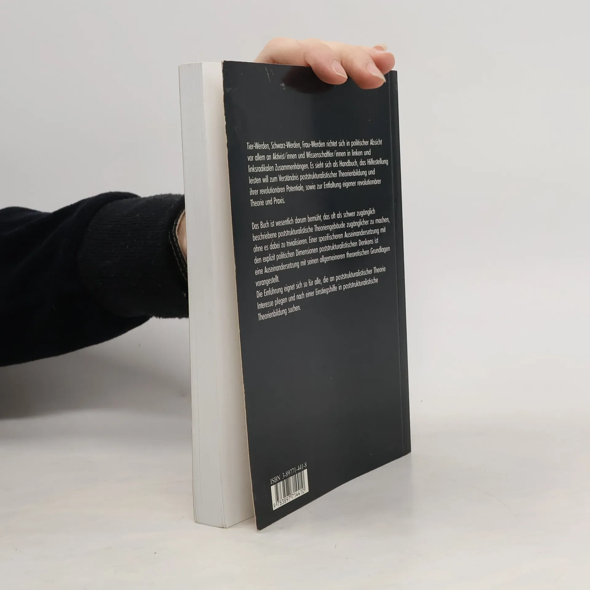 Tier-Werden, Schwarz-Werden, Frau-Werden richtet sich in politischer Absicht vor allem an Aktivist/innen und Wissenschaftler/innen in linken und linksradikalen Zusammenhängen. Es sieht sich als Handbuch, das Hilfestellung leisten will zum Verständnis poststrukturalistischer Theorienbildung und ihrer revolutionären Potentiale, sowie zur Entfaltung eigener revolutionärer Theorie und Praxis. Das Buch ist wesentlich darum bemüht, das oft als schwer zugänglich beschriebene poststrukturalistische Theoriengebäude zugänglicher zu machen, ohne es dabei zu trivialisieren. Einer spezifischeren Auseinandersetzung mit den explizit politischen Dimensionen poststrukturalistischen Denkens ist eine Auseinandersetzung mit seinen allgemeineren theoretischen Grundlagen vorangestellt. Die Einführung eignet sich so für alle, die an poststrukturalistischer Theorie Interesse pflegen und nach einer Einstiegshilfe in poststrukturalistische Theorienbildung suchen.