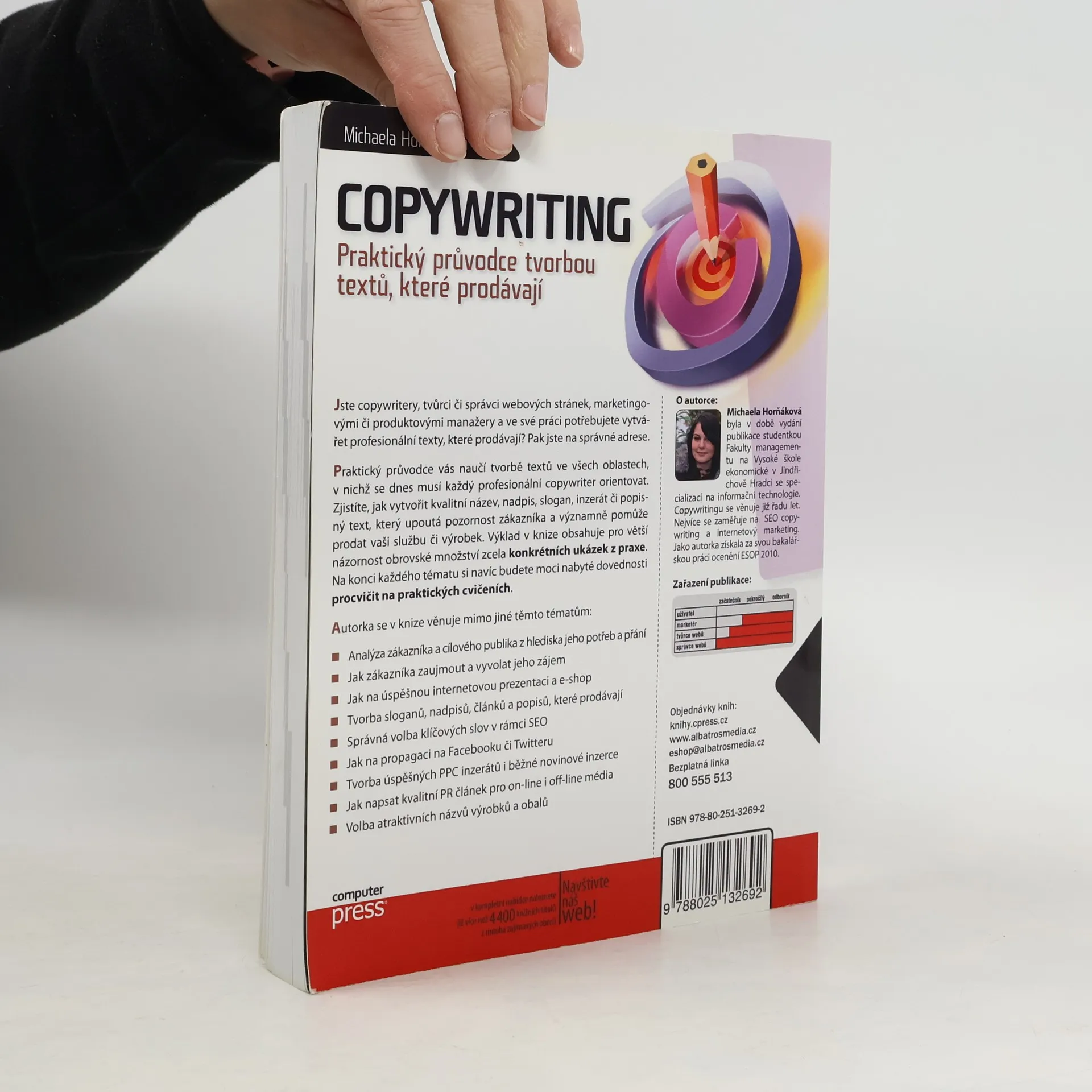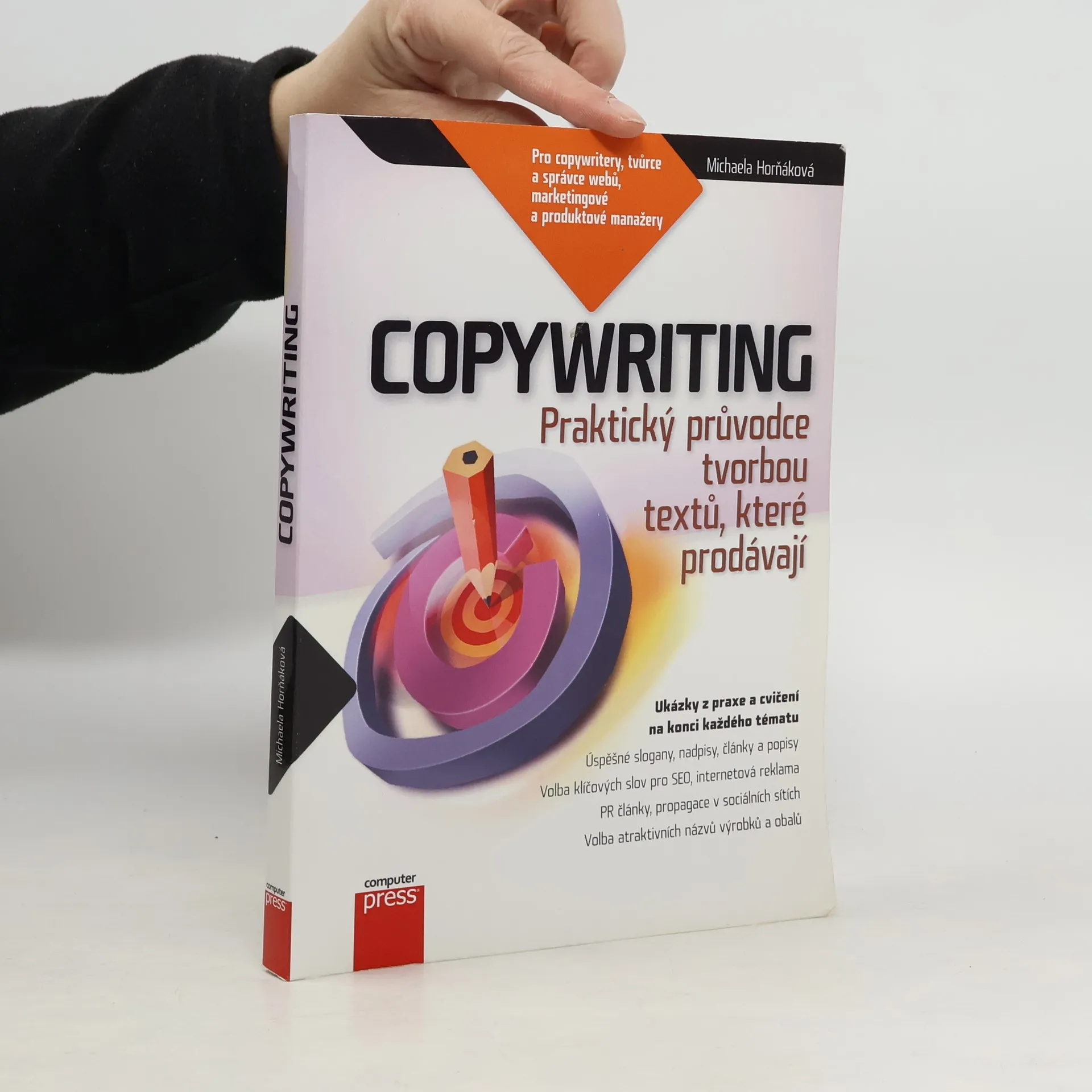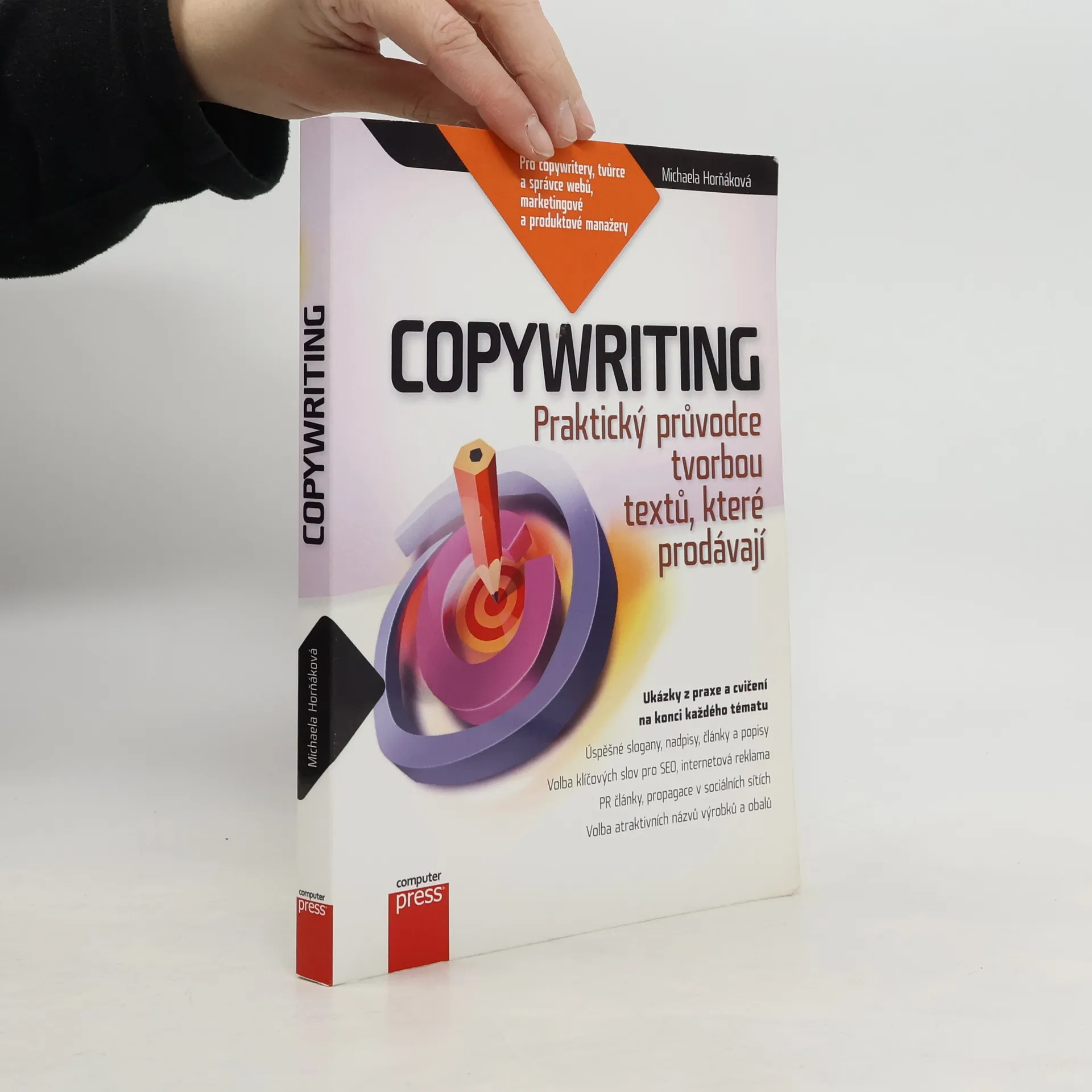 Podrobný průvodce tvorbou textů, které prodávají. Jste copywritery, tvůrci či správci webových stránek, marketingovými či produktovými manažery a ve své práci potřebujete vytvářet profesionální texty, které prodávají? Pak jste na správné adrese. Praktický průvodce vás naučí tvorbě textů ve všech oblastech, v nichž se dnes musí každý profesionální copywriter orientovat. Zjistíte, jak vytvořit kvalitní název, nadpis, slogan, inzerát či popisný text, který upoutá pozornost zákazníka a významně pomůže prodat vaši službu či výrobek. Výklad v knize obsahuje pro větší názornost obrovské množství zcela konkrétních ukázek z praxe. Na konci každého tématu si navíc budete moci nabyté dovednosti procvičit na praktických cvičeních. Autorka se v knize věnuje mimo jiné těmto tématům: Analýza zákazníka a cílového publika z hlediska jeho potřeb a přání Jak zákazníka zaujmout a vyvolat jeho zájem Jak na úspěšnou internetovou prezentaci a e-shop Tvorba sloganů, nadpisů, článků a popisů, které prodávají Správná volba klíčových slov v rámci SEO Jak na propagaci na Facebooku či Twitteru Tvorba úspěšných PPC inzerátů i běžné novinové inzerce Jak napsat kvalitní PR článek pro on-line i off-line média Volba atraktivních názvů výrobků a obalů
