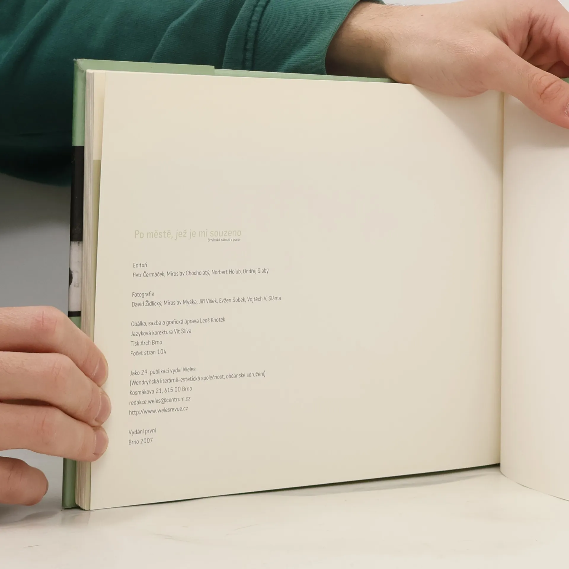 Po městě, jež je mi souzeno: Brněnská zákoutí v poezii. Publikace formou literárně-fotografické koláže nabízí pohled na místa, která zůstávají zapomenuta či z tváře města Brna pomalu mizí. 40 básníků, 5 fotografů: David Židlický, Miroslav Myška, Jiří Víšek, Evžen Sobek, Vojtěch V. Sláma.