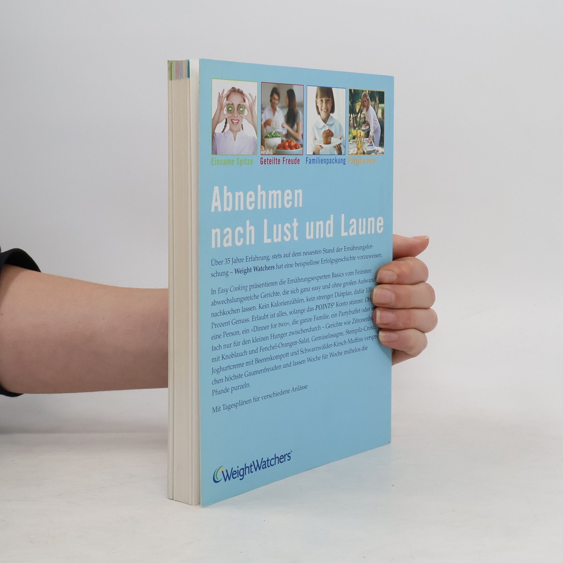 Weight Watchers – mit dem Erfolgskonzept zum Wunschgewicht Über 35 Jahre Erfahrung, stets auf dem neuesten Stand der Ernährungsforschung – Weight Watchers hat eine beispiellose Erfolgsgeschichte vorzuweisen. Das belegen mehr als zwei Millionen verkaufte Weight Watchers-Kochbücher allein in Deutschland. In ihrem neuesten Buch präsentieren die Ernährungsexperten Basics vom Feinsten: abwechslungsreiche Gerichte, die sich ganz easy und ohne großen Aufwand nachkochen lassen. Kein Kalorienzählen, kein strenger Diätplan, dafür 100 Prozent Genuss. Das Weight Watchers-Ernährungsprogramm gilt weltweit als ausgewogene und erfolgreiche Methode der langfristigen Gewichtsreduktion: Millionen haben es geschafft, so ihr Wunschgewicht zu erreichen. 25 Millionen Kilo wurden seit 1970 abgespeckt. Abnehmen nach Lust und Laune – das ist die Devise! Erlaubt ist alles, solange das POINTS®Konto stimmt. Ob für eine Person, die ganze Familie, den kleinen Hunger zwischendurch oder ein festliches Menü – Gerichte wie Zitronenhuhn mit Knoblauch und Fenchel-Orangen-Salat, Gemüselasagne, Steinpilz-Crostini, Joghurtcreme mit Beerenkompott und Schwarzwälder-Kirsch-Muffins versprechen Genuss und lassen die Pfunde Woche für Woche purzeln. Weight Watchers ist nicht umsonst das bekannteste Ernährungskonzept der Welt.