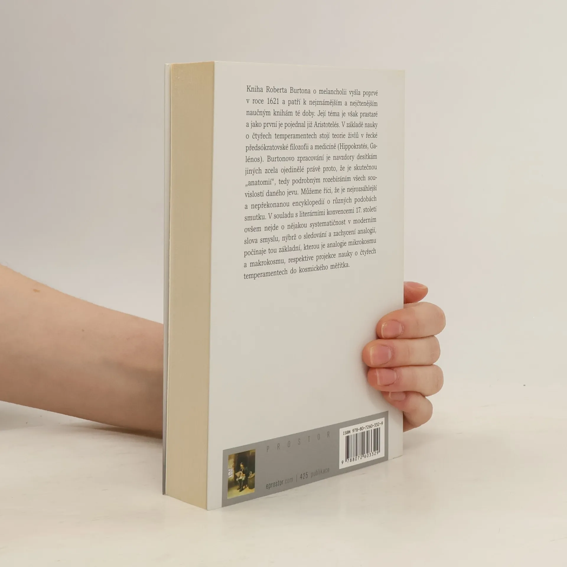 Kniha Roberta Burtona o melancholii, poprvé vydaná v roce 1621, patří mezi nejznámější naučné texty své doby. Její téma, které již zpracoval Aristotelés, se opírá o teorii čtyř temperamentu a živlů v řecké filozofii a medicíně. Burtonovo zpracování je jedinečné svou podrobnou analýzou melancholie, čímž se stává rozsáhlou encyklopedií různých podob smutku. V souladu s literárními konvencemi 17. století sleduje analogie, zejména mezi mikrokosmem a makrokosmem, a projekcí nauky o temperamentech do širších měřítek. Melancholie se podle Burtona stává základní dispozicí, která odráží chaotický svět a lidský život na hranici nevyléčitelné choroby. Kritizuje společenské poměry své doby, včetně vládce, vojáků, náboženských vůdců a rodičů, ale také zaznamenává pozitivní příklady řešení těchto nedostatků. V úvodu k dílu s ironií představuje svou představu o léčbě a ideálním uspořádání světa. Burtonův traktát je nejen poučný, ale i zábavný. Zajímá se o astronomii, vliv hudby na mysl, náboženské otázky a problémy lásky. Na podporu svých tezí využívá citáty klasiků i moderních autorů. Jeho dílo je klíčovým pramenem pro další zpracování tématu a nyní je dostupné českým čtenářům v překladu Miroslava Petříčka.
