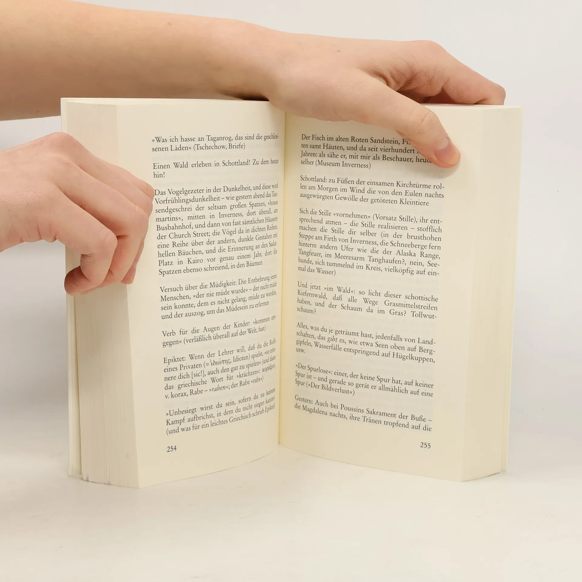 Es ist lange kein Buch wie dieses erschienen. Keines, das diese Fülle, diese Aufmerksamkeit, Gewissenhaftigkeit und zugleich Beschwingtheit hätte, diesen Ernst und diese Offenheit. Und keines von solcher Sprachmacht. Es enthält die Notizen, die Peter Handke sich gemacht hat, 'ohne festen Wohnsitz, in der hier memorierten und evozierten Zeit, vom November 1987 bis zum Wieder-Seßhaftwerden im Juli 1990'. Er selber nennt es 'die letzte Phase meines Mit-Schreibens mit den täglichen und nächtlichen Geschehnissen'. Es war ein Reisen, das ganz sich selbst überlassen war, ein Unterwegssein, dessen Ziel immer weit vor dem Reisenden lag und doch in jedem Augenblick erreichbar war. Es führte durch Jugoslawien, nach Griechenland, nach Ägypten, quer durch Europa, nach Japan und immer wieder in den slowenischen Karst. Aus den Augenblicken wurden Tage, Wochen, Monate und Jahre – Zeit, in der Räume durchquert wurden, die ebenso außen wie innen liegen.