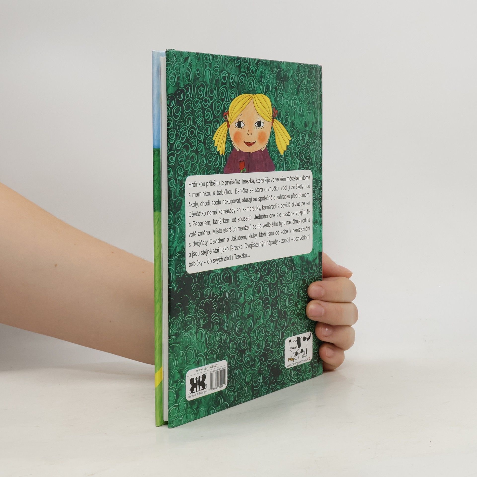 Hrdinkou příběhu je prvňačka Terezka, která žije ve velkém městském domě s maminkou a babičkou. Babička se stará o vnučku, vodí ji ze školy i do školy, chodí spolu nakupovat, starají se společně o zahrádku před domem. Děvčátko nemá kamarády ani kamarádky, kamarádí a povídá si vlastně jen s Pepanem, kanárkem od sousedů. Jednoho dne ale nastane v jejím životě změna. Místo starších manželů se do vedlejšího bytu nastěhuje rodina s dvojčaty Davidem a Jakubem, kluky, kteří jsou od sebe k nerozeznání a jsou stejně staří jako Terezka. Dvojčata hýří nápady a zapojí - bez vědomí babičky - do svých akcí i Terezku.
