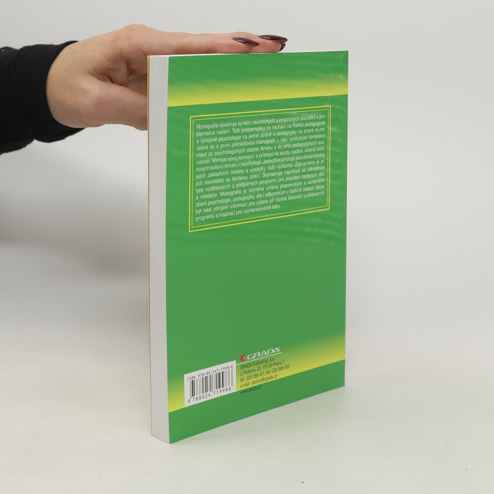 Pedagogicko-psychologické přístupy, modely, výzkumy a jejich vztah ke školské praxi Problematika nadání je po řadu let zkoumána nejen v psychologii a pedagogice, ale zajímají se o ni i další obory. V současné době se stalo téma nadání velmi aktuální a v souvislosti se změnami ve školství mu věnuje stále větší pozornost i široká veřejnost. Ačkoliv v zahraničí se nadáním zabývá řada odborných publikací, u nás nemáme téměř žádnou. A právě proto vznikla tato kniha - aby alespoň částečně zaplnila mezeru. Prezentuje základní přístupy ke studiu nadání, věnuje se teoretickým otázkám a praktickým souvislostem daného tématu. Pojímá tři základní přístupy k nadání dítěte: kognitivní, osobnostně-vývojový, sociálně-kulturní. Stranou nezůstává ani klíčová otázka - vzdělávání a rozvíjení nadaných, vyhledávání nadaných dětí a jejich realizace v práci. Nedílnou součástí tohoto tématu je i vzdělávání učitelů pro práci s nadanými žáky. Publikace vychází z ryze českého prostředí a je věnována zejména studentům pedagogických oborů a oborů psychologie. Řadu nejnovějších informací zde naleznou i psychologové a pedagogové v praxi