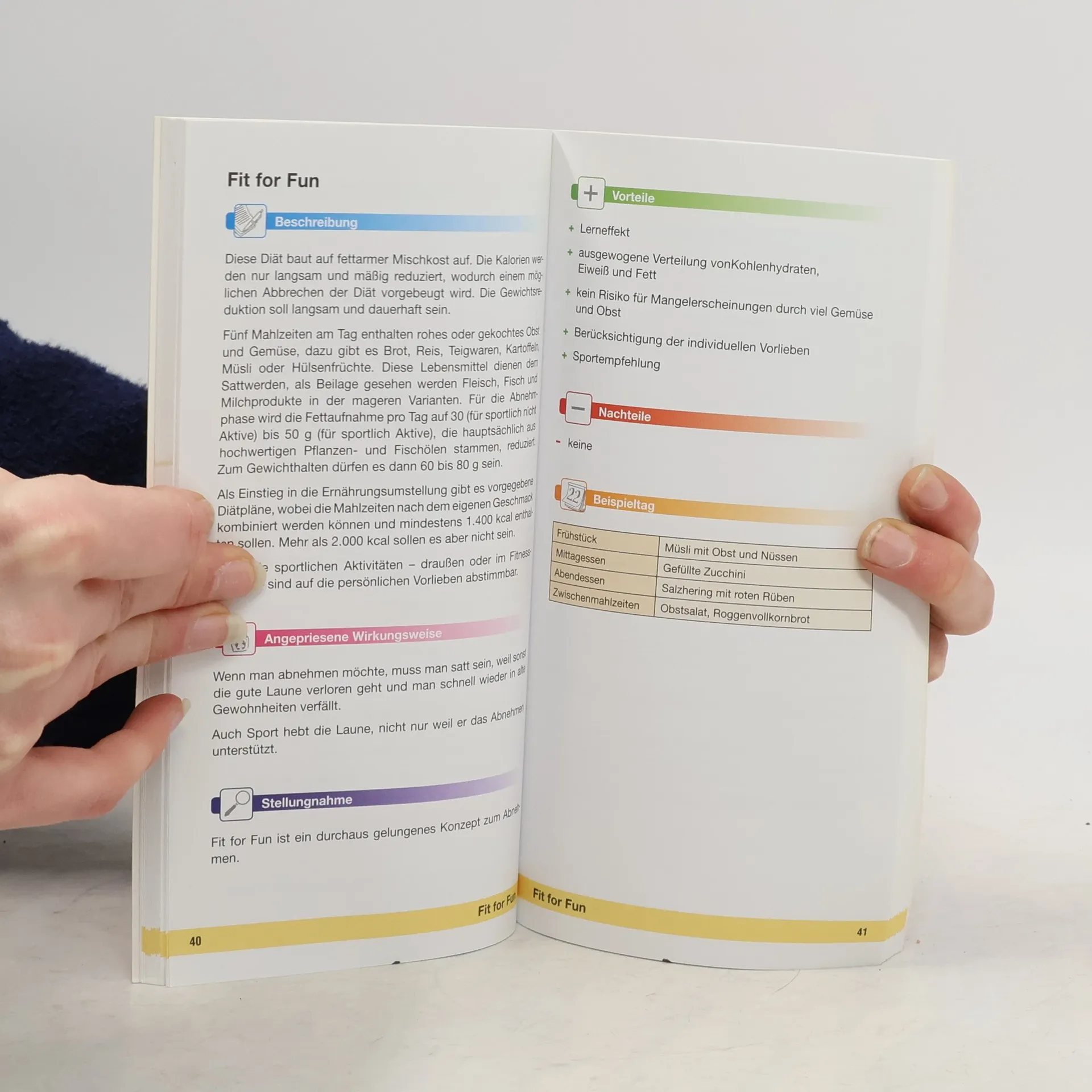 Die 50 gängigsten Diäten - von Ananas-Diät, Lagerfelds 3-D-Diät über Dinner Cancelling bis Zuckerknacker-Diät - werden in diesem schmalen Ratgeber unter die Lupe genommen. Die Wirkungsweise jeder Diätform wird genau beschrieben und kritisch bewertet (Vor- und Nachteile). Zu etlichen Diäten gibt es zur näheren Erläuterung noch Beispieltage. Die Darbietung ist sehr übersichtlich (farbige Überschriften) und dient dem schnellen Überblick. Der gut brauchbare, preiswerte Band enthält alle Informationen, die für eine Eintaxierung der Diät notwendig sind und kann zusätzlich zu umfassenderen Ratgebern wie "Schlank & fit" (BA 3/03), G. Krause-Fabricius (BA 9/03), U. Wahrburg (BA 11/03) oder "ABC der Schlankmacher" (BA 5/05) bereitgestellt werden. (2 A)