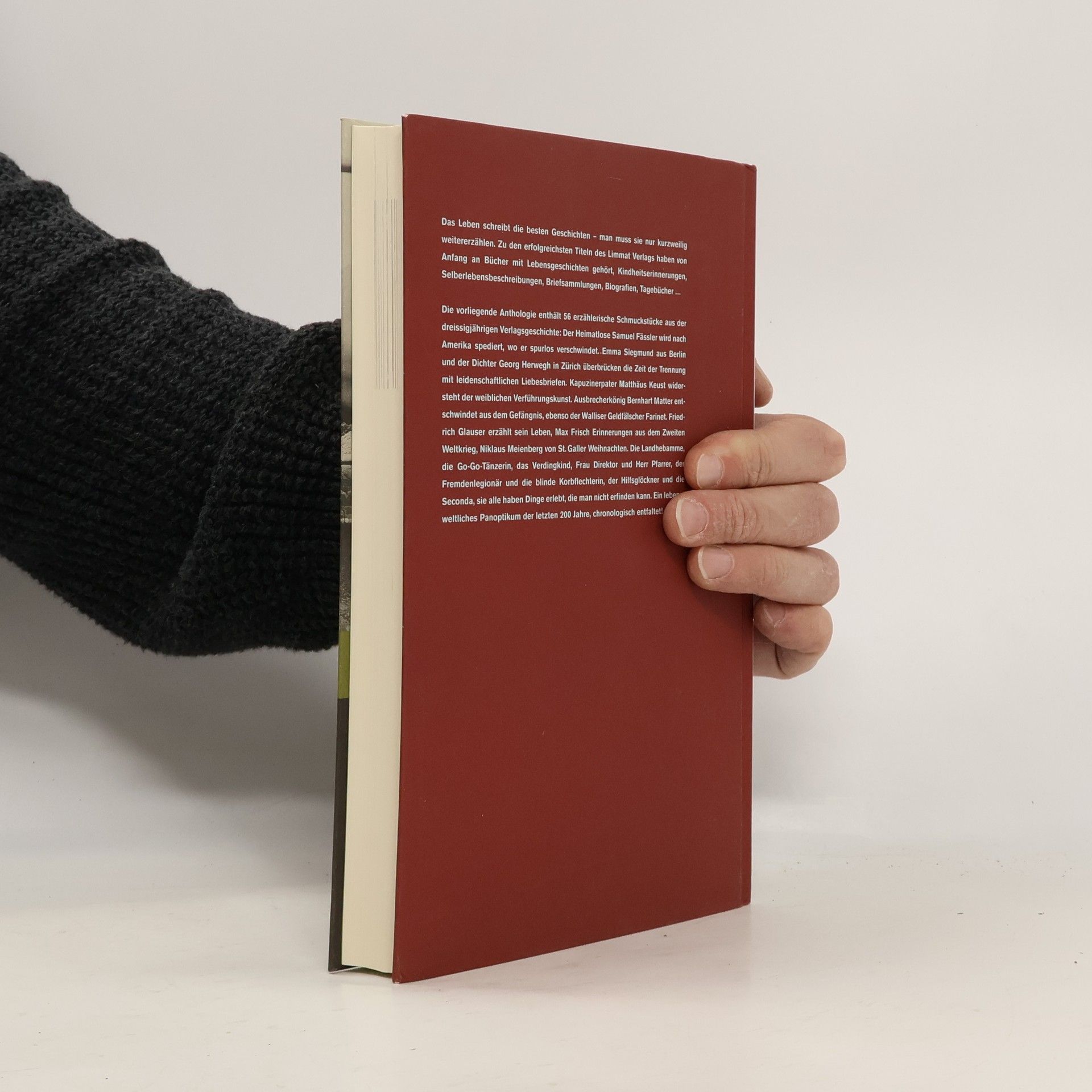 Das Leben schreibt die besten Geschichten – man muss sie nur kurzweilig erzählen. Zu den erfolgreichsten Titeln des Limmat Verlags haben von Anfang an Bücher mit Lebensgeschichten gehört, Kindheitserinnerungen, Selberlebensbeschreibungen, Briefsammlungen, Biografien, Tagebücher … Die vorliegende Anthologie enthält erzählerische Schmuckstücke aus der dreissigjährigen Verlagsgeschichte: Der Heimatlose Samuel Fässler wird nach Amerika spediert, wo er spurlos verschwindet. Emma Siegmund aus Berlin und der Dichter Georg Herwegh in Zürich überbrücken die Zeit der Trennung mit leidenschaftlichen Liebesbriefen. Kapuzinerpater Matthäus Keust widersteht der weiblichen Verführungskunst. Ausbrecherkönig Bernhart Matter entschwindet aus dem Gefängnis, ebenso der Walliser Geldfälscher Farinet. Friedrich Glauser erzählt sein Leben, Max Frisch Erinnerungen aus dem Zweiten Weltkrieg, Niklaus Meienberg von St. Galler Weihnachten. Die Landhebamme, die Go-Go-Tänzerin, das Verdingkind, Frau Direktor und Herr Pfarrer, der Fremdenlegionär und die blinde Korbflechterin, der Hilfsglöckner und die Seconda, sie alle haben Dinge erlebt, die man nicht erfinden kann. Ein lebensweltliches Panoptikum der letzten 200 Jahre, chronologisch entfaltet! Erscheint zum 30-jährigen Verlagsjubiläum und wurde ergänzt mit einer Bibliografie 1975-2005