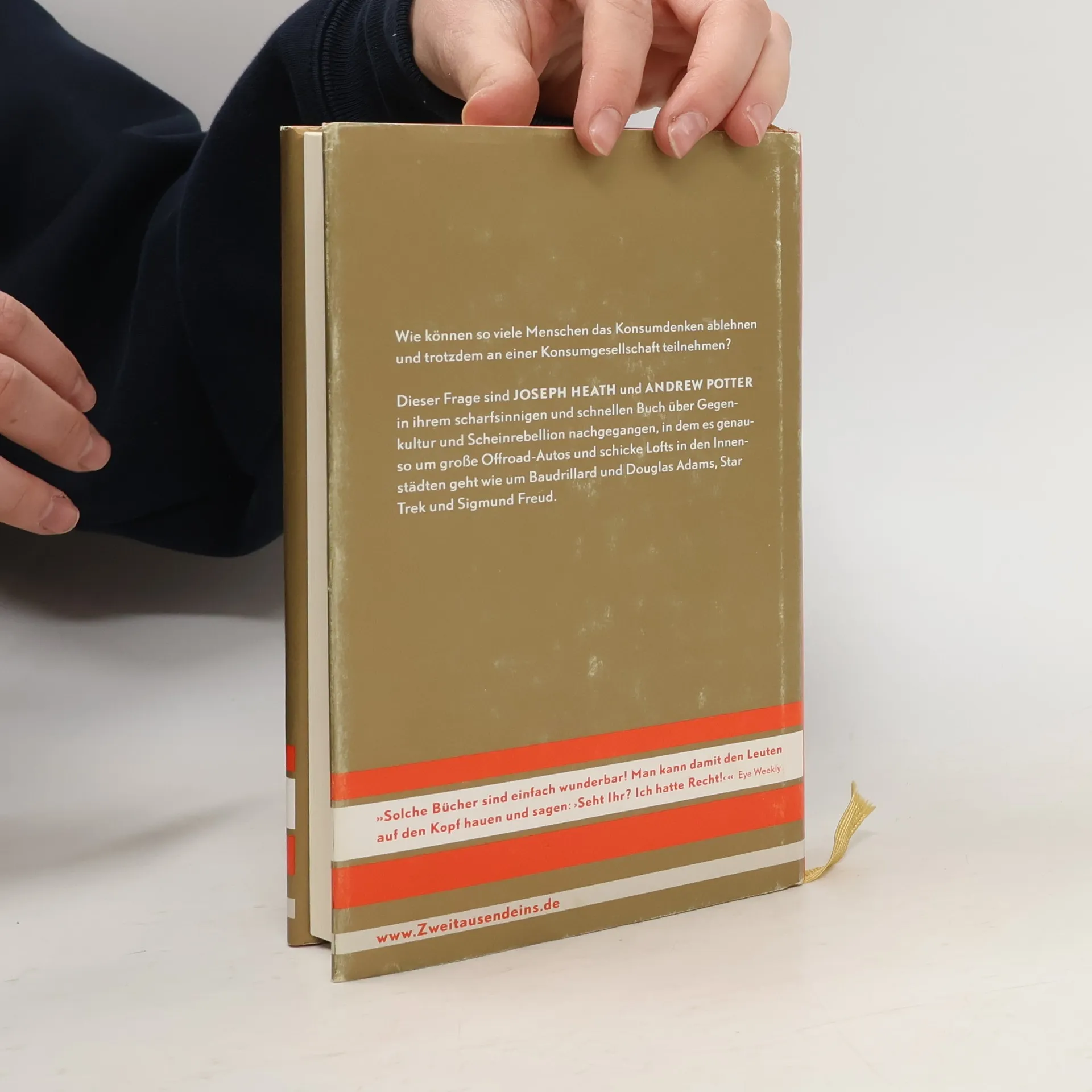 Lehnen Sie die Konsumkultur ab? Den Verpackungskram, den Reklamerummel? Eine Modeindustrie, die Jagd auf Ihre Kinder macht, mit dem Ergebnis, dass außer Klamotten von Replay und Schuhen von Nike nichts mehr in die Tüte kommt? Willkommen im Club. Denn selbst in knappen Zeiten gehört in Deutschland eine konsumkritische Haltung fast schon zum guten Ton. Mit einer paradoxen Konsequenz: Versandhäuser, die sich von der industriellen Massenfertigung abwenden und nur teure Design-Produkte vertreiben – die so genannten „guten Dinge“ – florieren. Filme wie American Beauty oder Fight Club, die sich gegen die Entfremdung des modernen Menschen in der Warenwelt wenden, machen Kasse; und Gesellschafts-Kritiken wie Naomi Kleins No Logo halten sich monatelang in den Bestsellerlisten. Offenbar funktioniert der Kapitalismus bestens und stellt sich auch noch auf die Nachfrage nach konsumkritischen Produkten ein. Aber wie können so viele Menschen das Konsumdenken ablehnen und trotzdem an einer Konsumgesellschaft teilnehmen? Dieser Frage sind die Autoren in ihrem schnellen Buch über Gegenkultur und Scheinrebellion nachgegangen, in dem es genauso um große Autos und schicke Lofts geht wie um Baudrillard und Douglas Adams, Star Trek und Sigmund Freud.