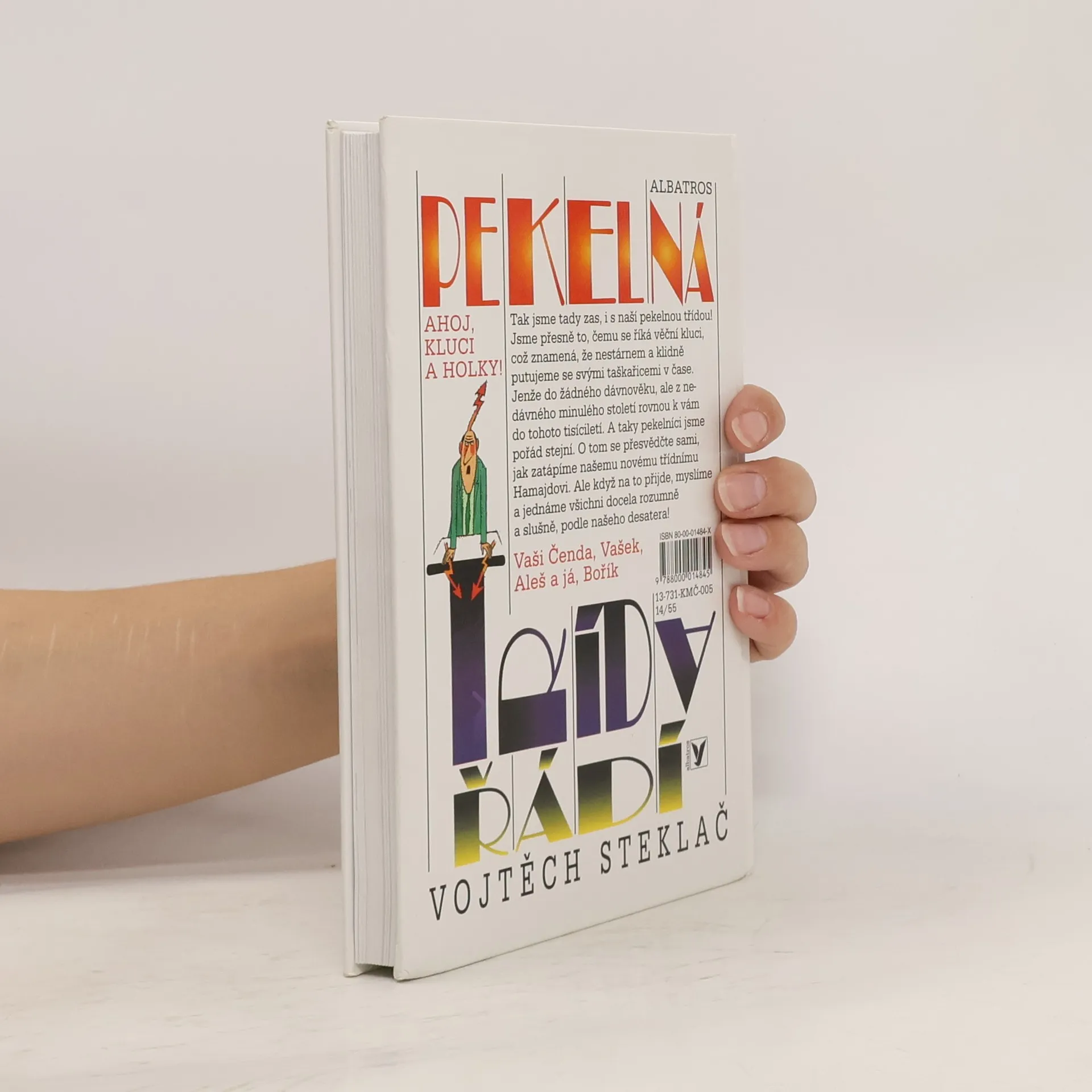 Tak jsme tady zas, is naší pekelnou třídou! Jsme přesně to, čemu se říká věční kluci, což znamená, že nestárnem a klidně putujeme se svými taškařicemi v čase. Jenže do žádného dávnověku, ale z nedávného minulého století rovnou k vám do tohoto tisíciletí. A taky pekelníci jsme pořád stejní. O tom se přesvědčte sami, jak zatápíme našemu novému třídnímu Hamajdovi. Ale když na to přijde, myslíme a jednáme všichni docela rozumně a slušně, podle našeho desatera!