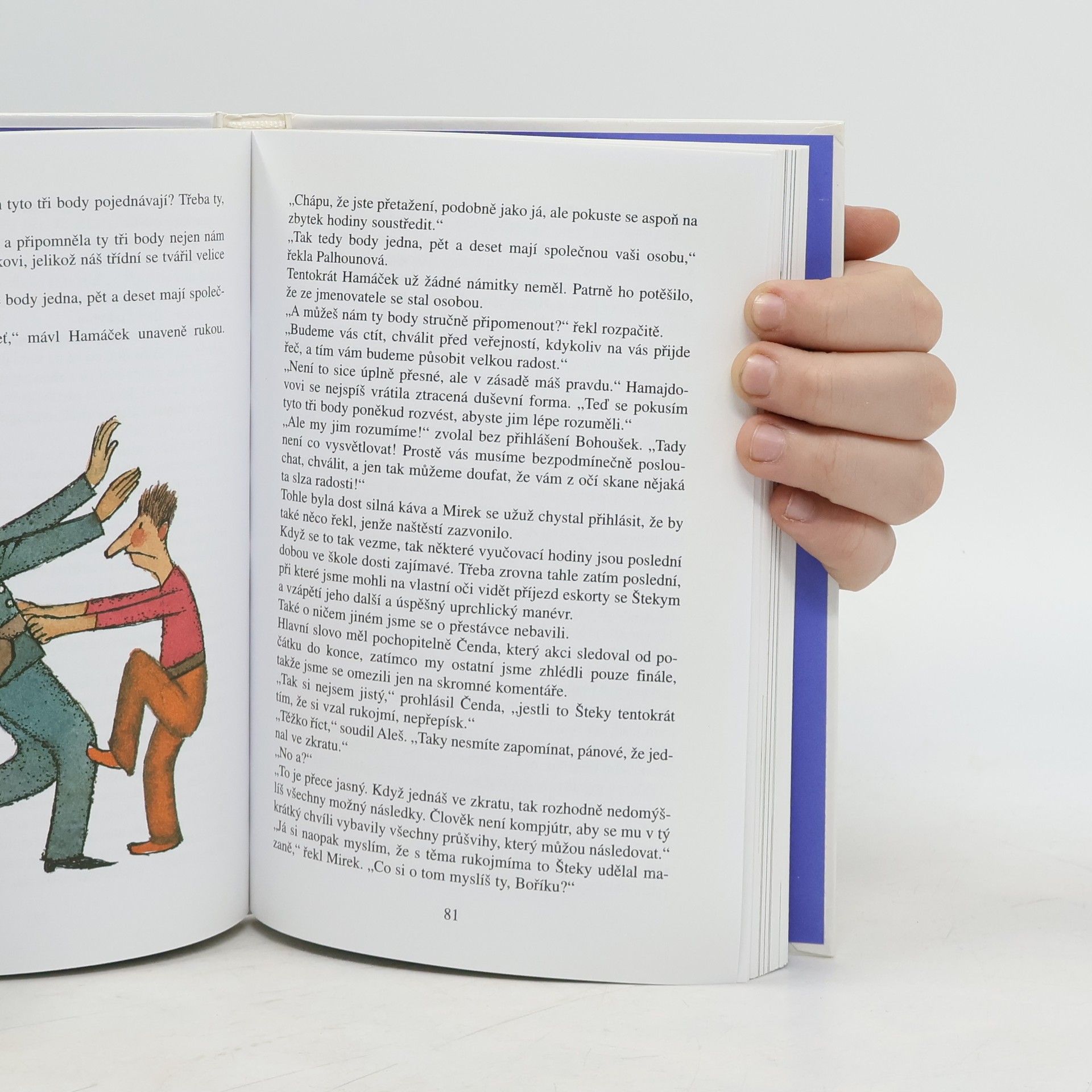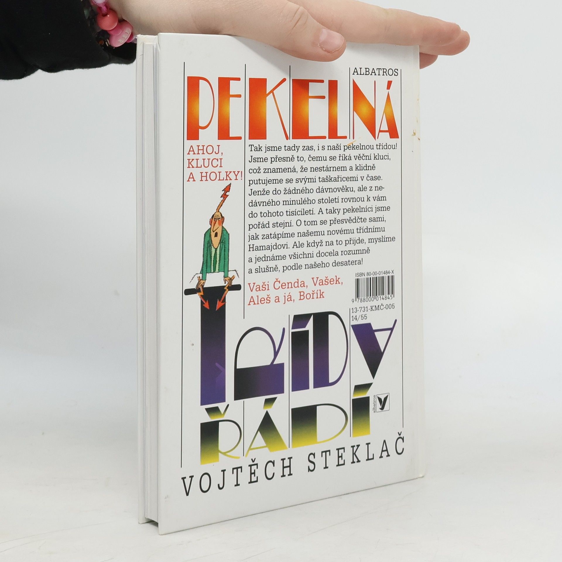 Tak jsme tady zas, is naší pekelnou třídou! Jsme přesně to, čemu se říká věční kluci, což znamená, že nestárnem a klidně putujeme se svými taškařicemi v čase. Jenže do žádného dávnověku, ale z nedávného minulého století rovnou k vám do tohoto tisíciletí. A taky pekelníci jsme pořád stejní. O tom se přesvědčte sami, jak zatápíme našemu novému třídnímu Hamajdovi. Ale když na to přijde, myslíme a jednáme všichni docela rozumně a slušně, podle našeho desatera!