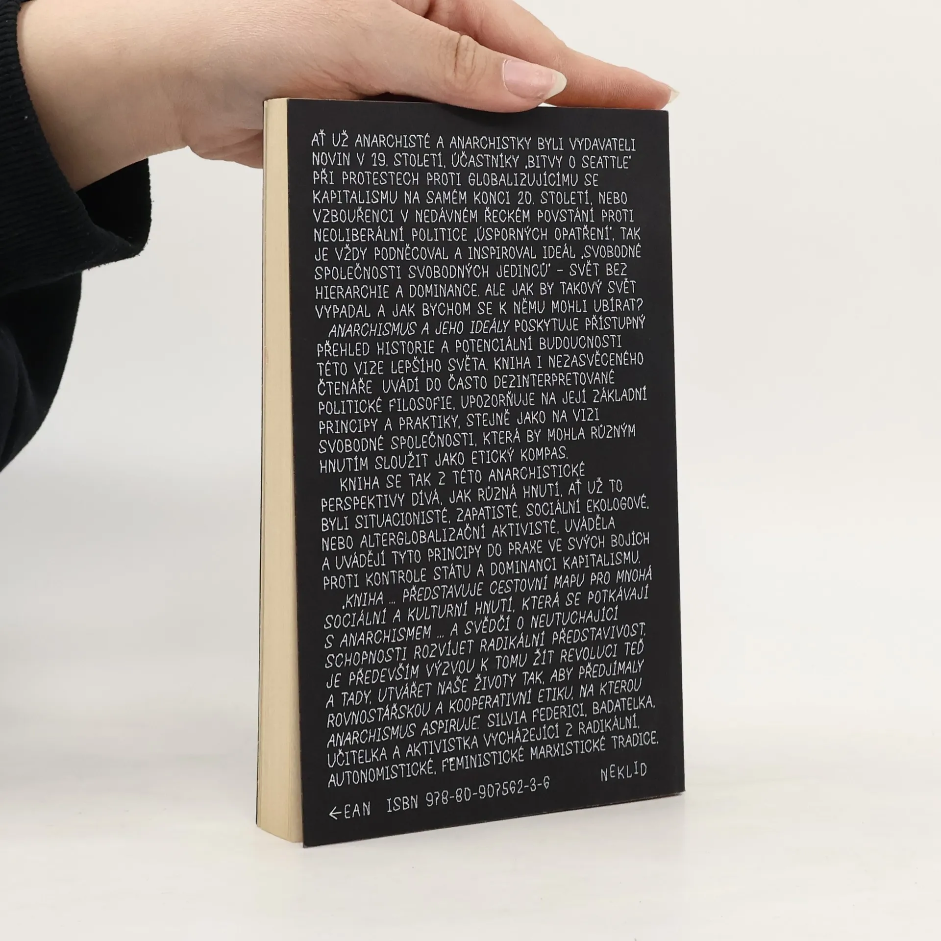 Ať už anarchisté a anarchistky byli vydavateli novin v 19. století, účastníky protestů proti globalizaci na konci 20. století, nebo vzbouřenci v nedávném řeckém povstání proti neoliberálním úsporným opatřením, vždy je inspiroval ideál „svobodné společnosti svobodných jedinců“ – svět bez hierarchie a dominance. Jak by takový svět mohl vypadat a jak se k němu dostat? Anarchismus a jeho ideály poskytují přehled historie a potenciální budoucnosti této vize lepšího světa. Kniha uvádí čtenáře do často dezinterpretované politické filosofie, upozorňuje na její základní principy a praktiky, stejně jako na vizi svobodné společnosti, která může sloužit jako etický kompas pro různá hnutí. Z anarchistické perspektivy se zkoumá, jak různá hnutí, jako situacionisté, zapatisté, sociální ekologové či alterglobalizační aktivisté, aplikují tyto principy ve svých bojích proti státní kontrole a dominanci kapitalismu. Kniha představuje cestovní mapu pro sociální a kulturní hnutí, která se setkávají s anarchismem, a vyzývá k životu revoluce nyní, utvářejíc naše životy tak, aby předjímaly rovnostářskou a kooperativní etiku, na kterou anarchismus aspiruje.