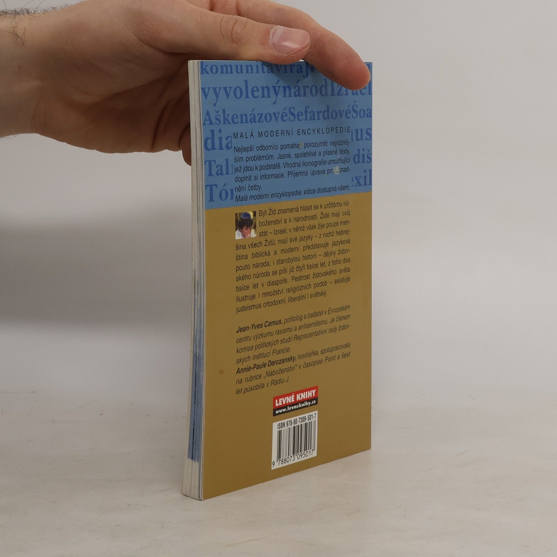 Malá moderní encyklopedie o Židech. Být Žid znamená hlásit se k určitému náboženství a národnosti. Židé mají svůj stát - Izrael, v němž však žije pouze menšina všech Židů; mají své jazyky - z nichž hebrejština biblická a moderní představuje jazykové pouto národa; i starobylou historii.