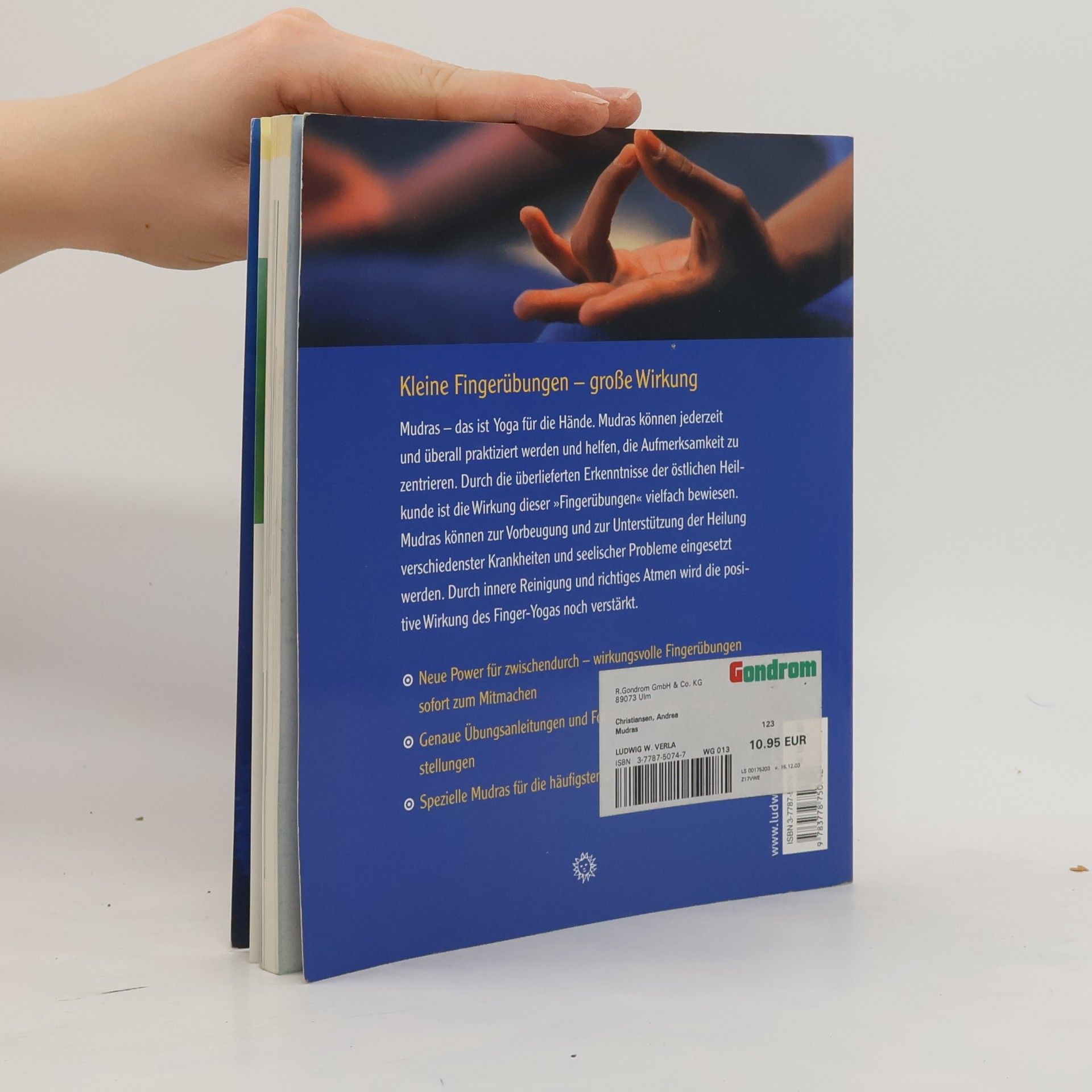 Kleine Fingerübungen - große Wirkung Mudras - das ist Yoga für die Hände. Mudras können überall und jederzeit praktiziert werden und helfen, die Aufmerksamkeit zu zentrieren. Durch die überlieferten Erkenntnisse der östlichen Heilkunde ist die Wirkung dieser „Fingerübungen“ vielfach bewiesen. Mudras können zur Vorbeugung und zur Unterstützung der Heilung verschiedenster Krankheiten und seelischer Probleme eingesetzt werden. Durch innere Reinigung und richtiges Atmen wird die positive Wirkung des Finger-Yogas noch verstärkt.