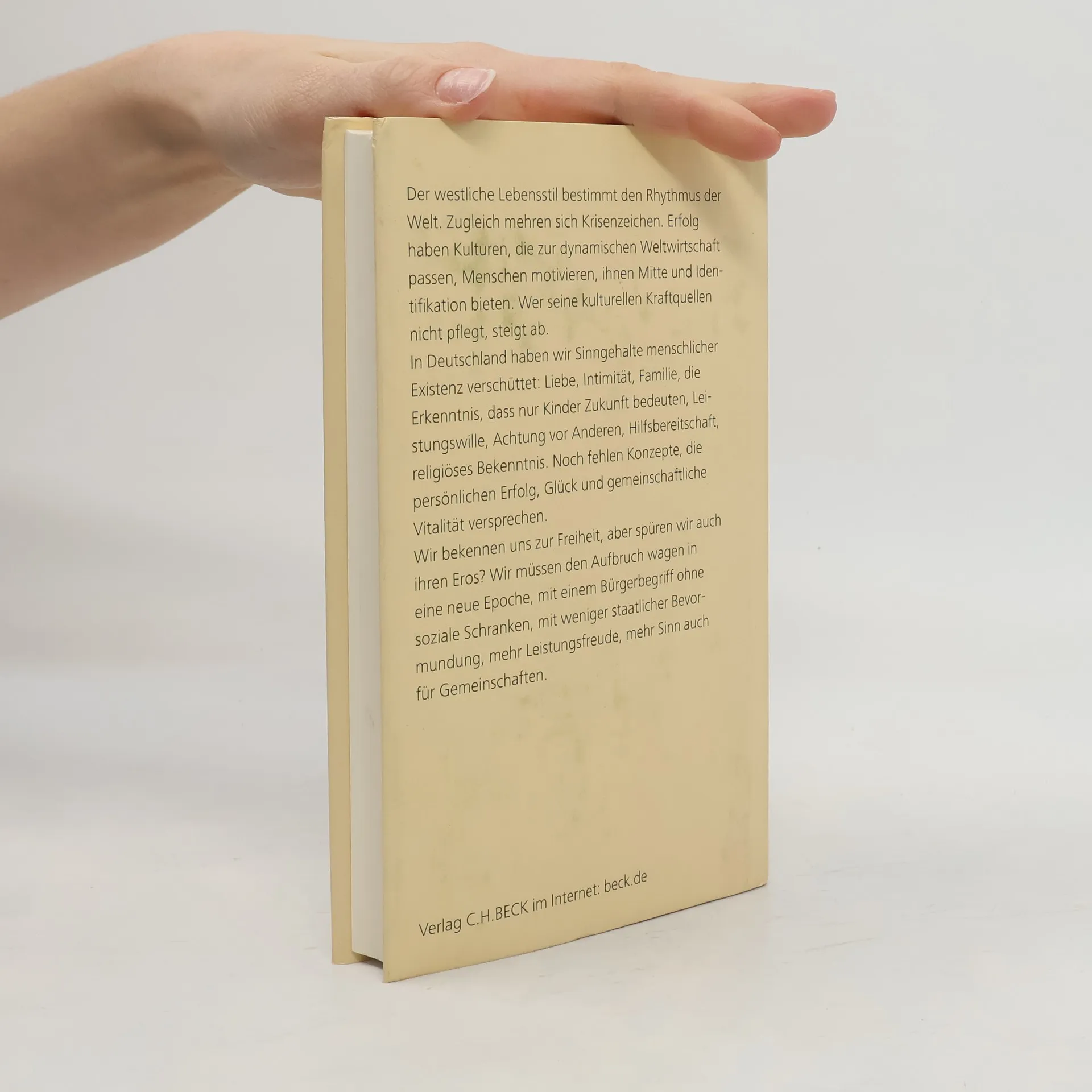 Der westliche Lebensstil prägt den globalen Rhythmus, während Krisenzeichen zunehmen. Nationen mit solidem kulturellen Fundament führen im internationalen Wettbewerb. Kulturen, die zur dynamischen Weltwirtschaft passen, motivieren Menschen und bieten Identifikation. Vernachlässigung kultureller Kraftquellen führt zum Abstieg. In Deutschland sind alte Ideen und Werte wie Liebe, Familie und Hilfsbereitschaft verloren gegangen. Es fehlen Konzepte für persönlichen Erfolg und gemeinschaftliche Vitalität. Die Freiheit wird bejaht, doch spüren wir ihren Eros? Ein Aufbruch in eine neue Epoche ist notwendig, mit einem Bürgerbegriff ohne soziale Schranken und weniger staatlicher Bevormundung. Gemeinschaften sind nur vital, wenn Alltagsvernunft gepflegt wird. Ohne eine sprachliche und kulturelle Gemeinschaft kann der Mensch sich nicht entfalten. Der Autor analysiert die Krise der westlichen Kultur, insbesondere in Deutschland, und schärft das Bewusstsein für vernachlässigte Werte. Er weist Wege in die Zukunft und regt zu Änderungen in der staatlichen Ordnung an, um die Spielräume der Freiheit zu erweitern. Wer mehr Weltoffenheit und Freiheit anstrebt, muss deren kulturelle Grundlagen stärken. Die Lektüre richtet sich an Verantwortliche und Bürger, die das Verhältnis von Individuum und Gemeinschaft hinterfragen und nach der Bedeutung von Freiheit suchen.