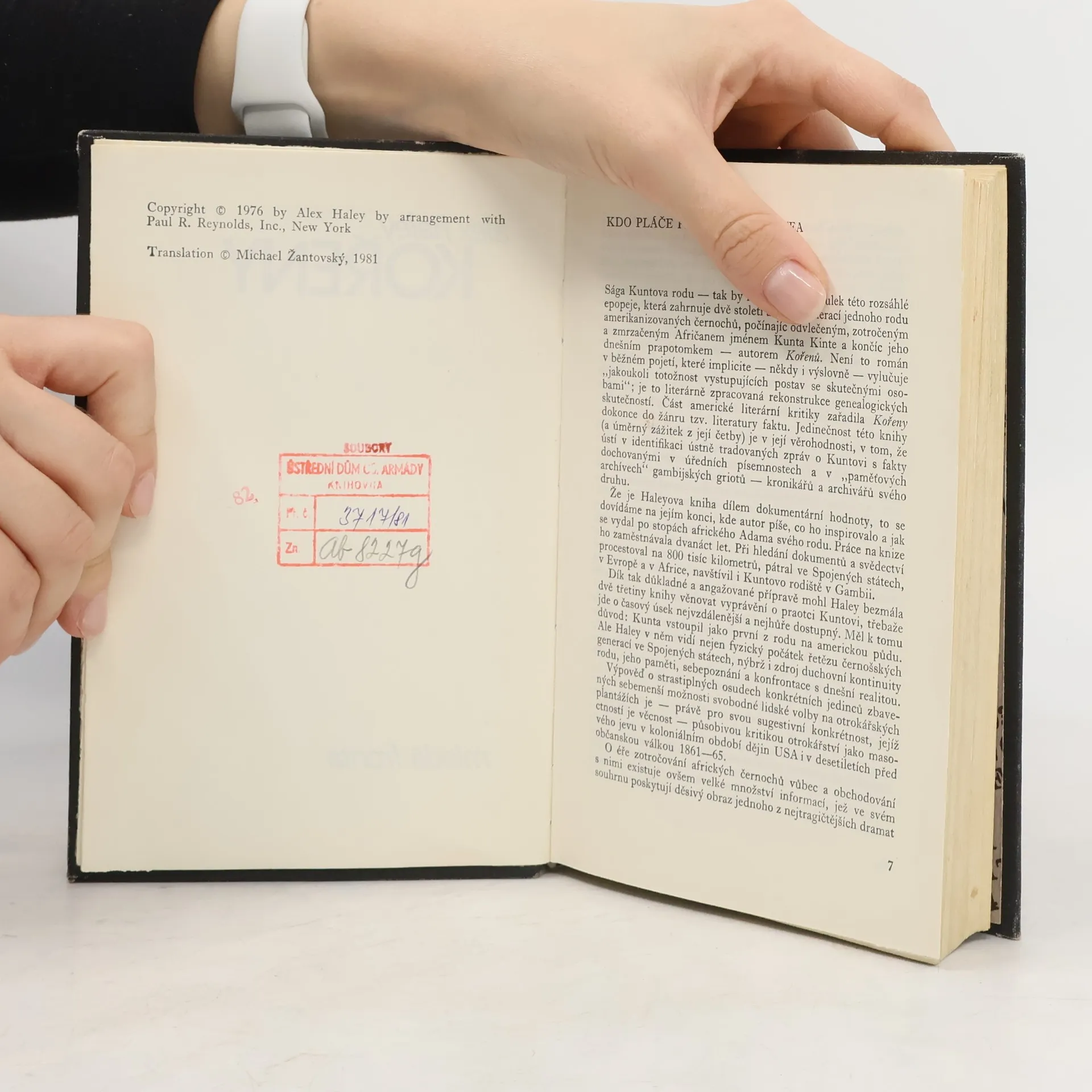 Obsáhlá epopej jednoho černošského rodu sleduje osudy sedmi generací zamerikanizovaných černochů za dobu dvou století. Začíná prvním z tohoto rodu, který nedobrovolně vstoupil na americkou půdu, mladým mužem jménem Kunta Kinte, který byl nedaleko své vesnice Juffure polapen lovci otroků, odvlečen za strastiplných podmínek na otrokářské lodi do Ameriky a strávil svůj život na plantážích. Jemu věnuje autor největší část vyprávění a pak líčí životní osudy dalších pokolení, která se postupně domáhala jistých práv, a končí generací současnou.