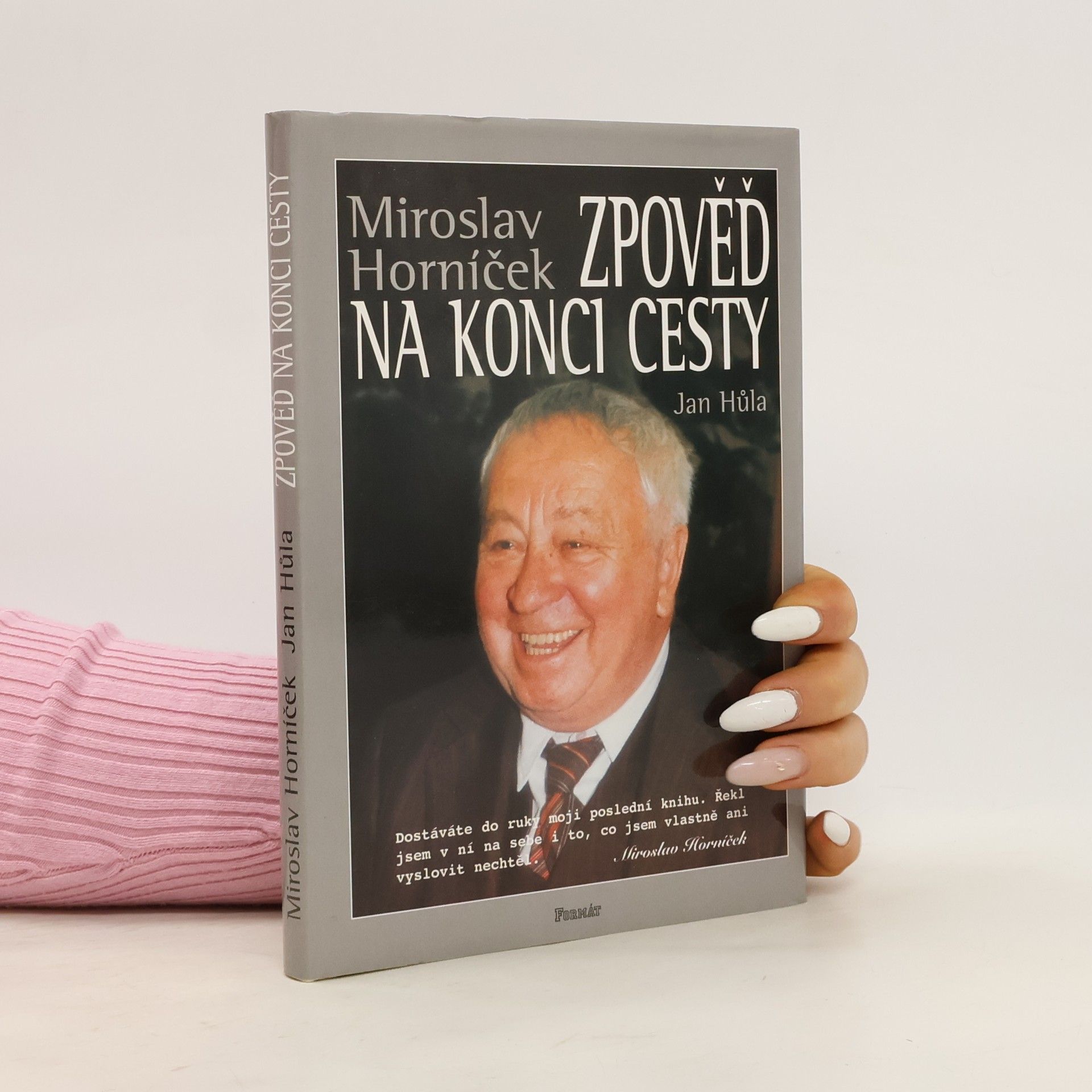 Miroslav Horníček u zpovědi na konci cesty. V rozhovoru vedeném Janem Hůlou se autor vrací k létům zralým i nezralým, k osobnostem, s nimiž se na své cestě životem setkal a ke svým trvalým láskám - herectví a výtvarnému umění. Ačkoliv má být tato knížka jakýmsi odkazem na rozloučenou, je psána s humorem charakteristickým pro spolutvůrce slavných forbín a tvůrce oblíbených Hovorů H.... celý text