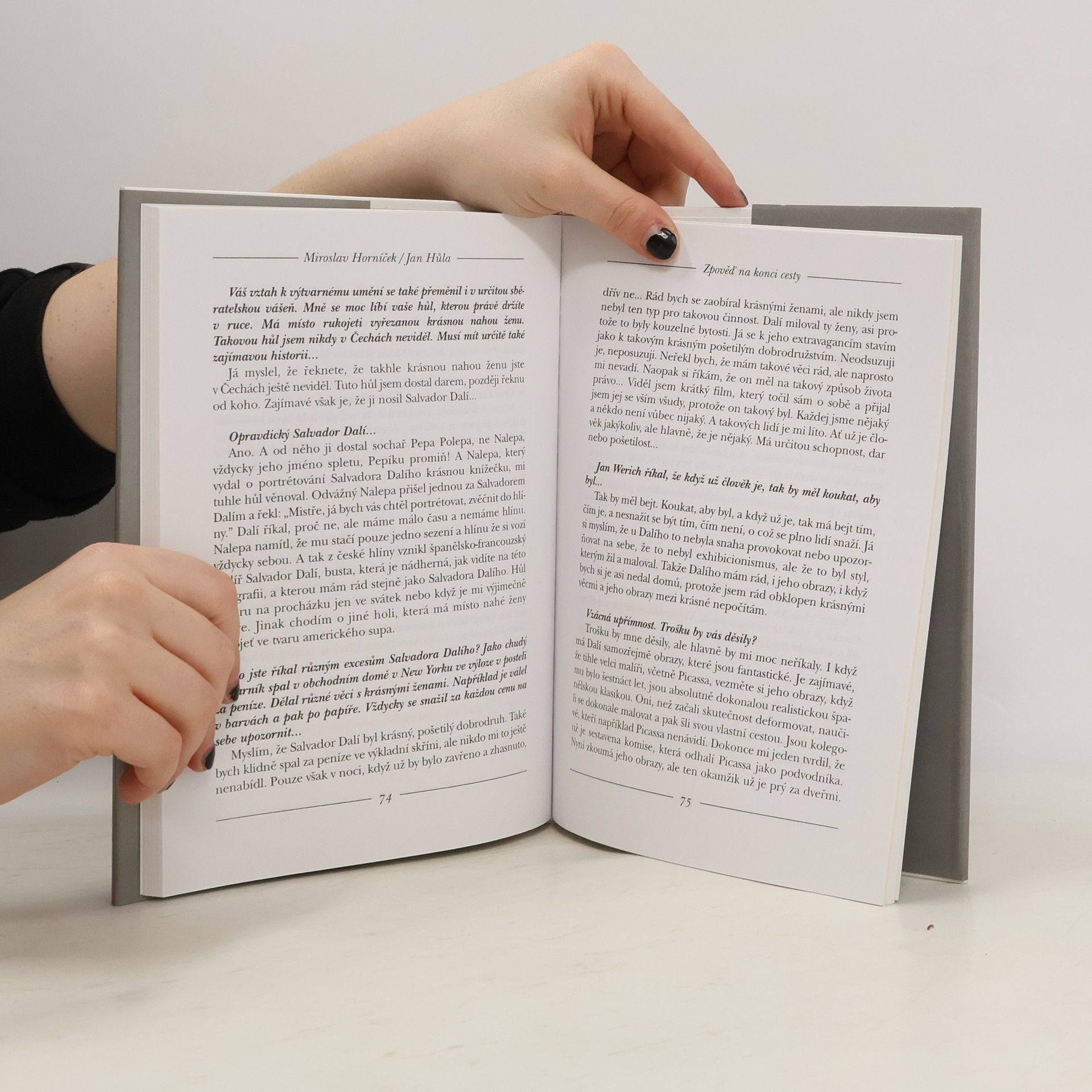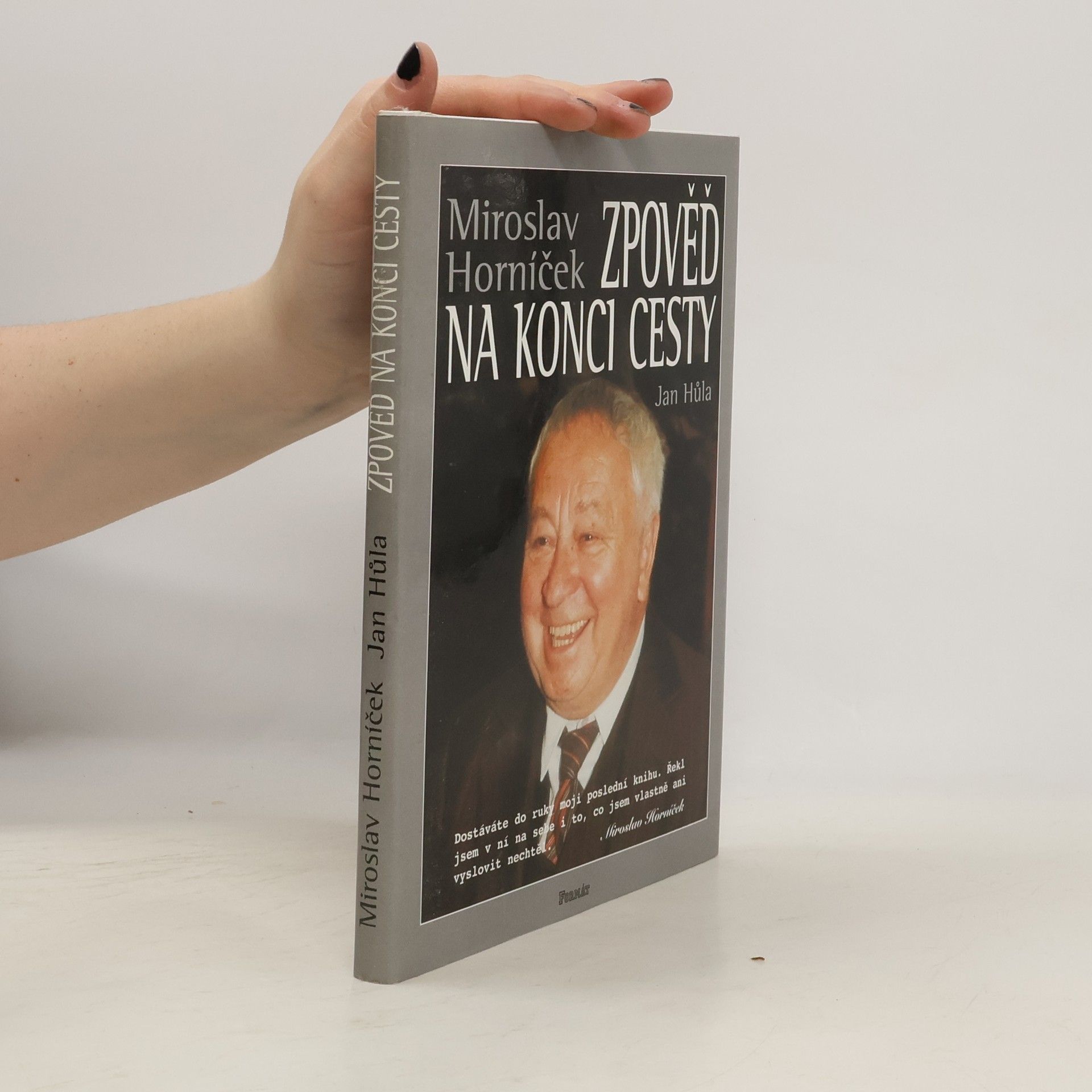 Miroslav Horníček u zpovědi na konci cesty. V rozhovoru vedeném Janem Hůlou se autor vrací k létům zralým i nezralým, k osobnostem, s nimiž se na své cestě životem setkal a ke svým trvalým láskám - herectví a výtvarnému umění. Ačkoliv má být tato knížka jakýmsi odkazem na rozloučenou, je psána s humorem charakteristickým pro spolutvůrce slavných forbín a tvůrce oblíbených Hovorů H.... celý text