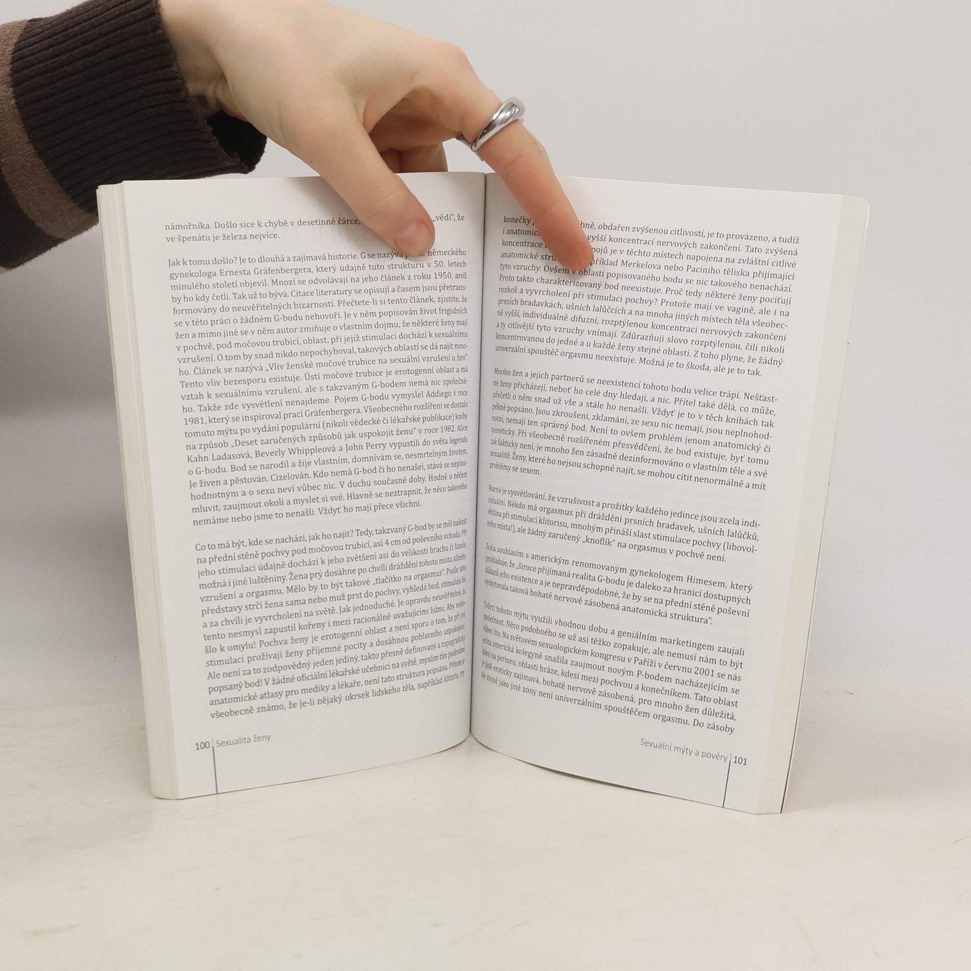 S rázností a vtipem jemu vlastním (tam, kde to ničemu nevadí), popisuje zkušený a oblíbený gynekolog fyzické i psychické dispozice žen. Zachycuje rozdíl mezi sexuálním prožitkem muže a ženy i mezi různými ženami. Dělá pořádek v tom, co je normální, co je vysněné, co je iluze dívčích románů, amerických filmů či příliš nadšených mužů, co se od sexu vlastně může očekávat a co všechno se může hodit za hlavu a prostě si užít. "Vřele doporučuji k přečtení. Mužům proto, aby pochopili, že co žena, to originál. A ženám naopak proto, aby se ujistily, že to, co prožívají, je zcela běžné a přirozené. A všem lidem proto, aby mimo jiné odbourali různá romantizující a nepravdivá klišé, která nám život v této oblasti spíše komplikují.