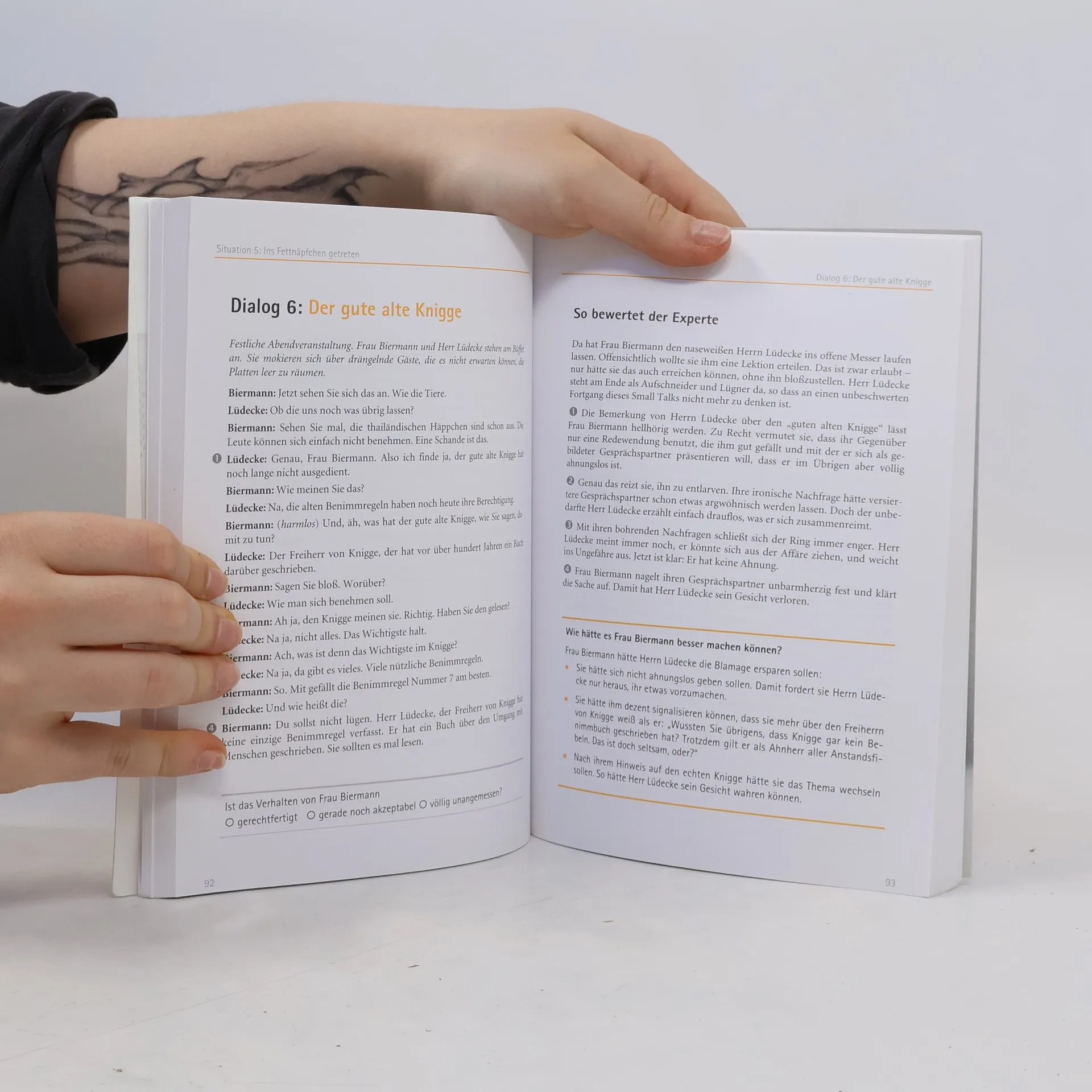 Die einzelnen Kapitel enthalten beispielhafte Gesprächssituationen, die kommentiert und bewertet werden.