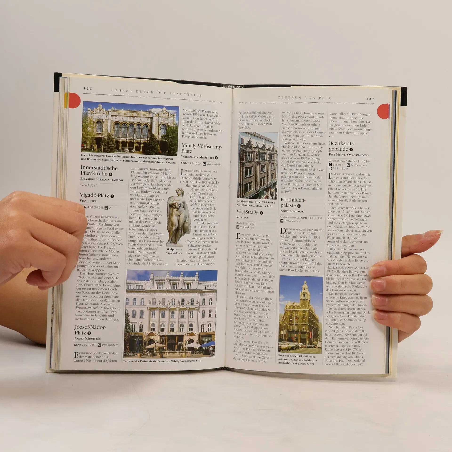 Vom türkischen Bad bis hin zum Barockpalais – überall in Budapest begegnet man Zeugen seiner facettenreichen Geschichte. Doch auch die gemütlichen Kaffeehäuser, die zahlreichen Wellness-Angebote und die imposanten Donaubrücken sind auf jeden Fall eine Reise wert. Der Vis-à-Vis Reiseführer Budapest macht Ihren Urlaub zu einem unvergesslichen Erlebnis. Besonderes Highlight sind die 3D-Aufrisszeichnungen der wichtigsten Sehenswürdigkeiten und die 3D-Grundrisse der bekanntesten Museen. Sie zeigen Ihnen auf einen Blick, was Sie nicht verpassen dürfen. Aktuelle Angaben zu Hotels, Restaurants, Shopping und Unterhaltung sowie viele praktische Tipps zu Verkehrsmitteln, Sicherheit und Öffnungszeiten finden sich im ausführlichen Praxisteil.