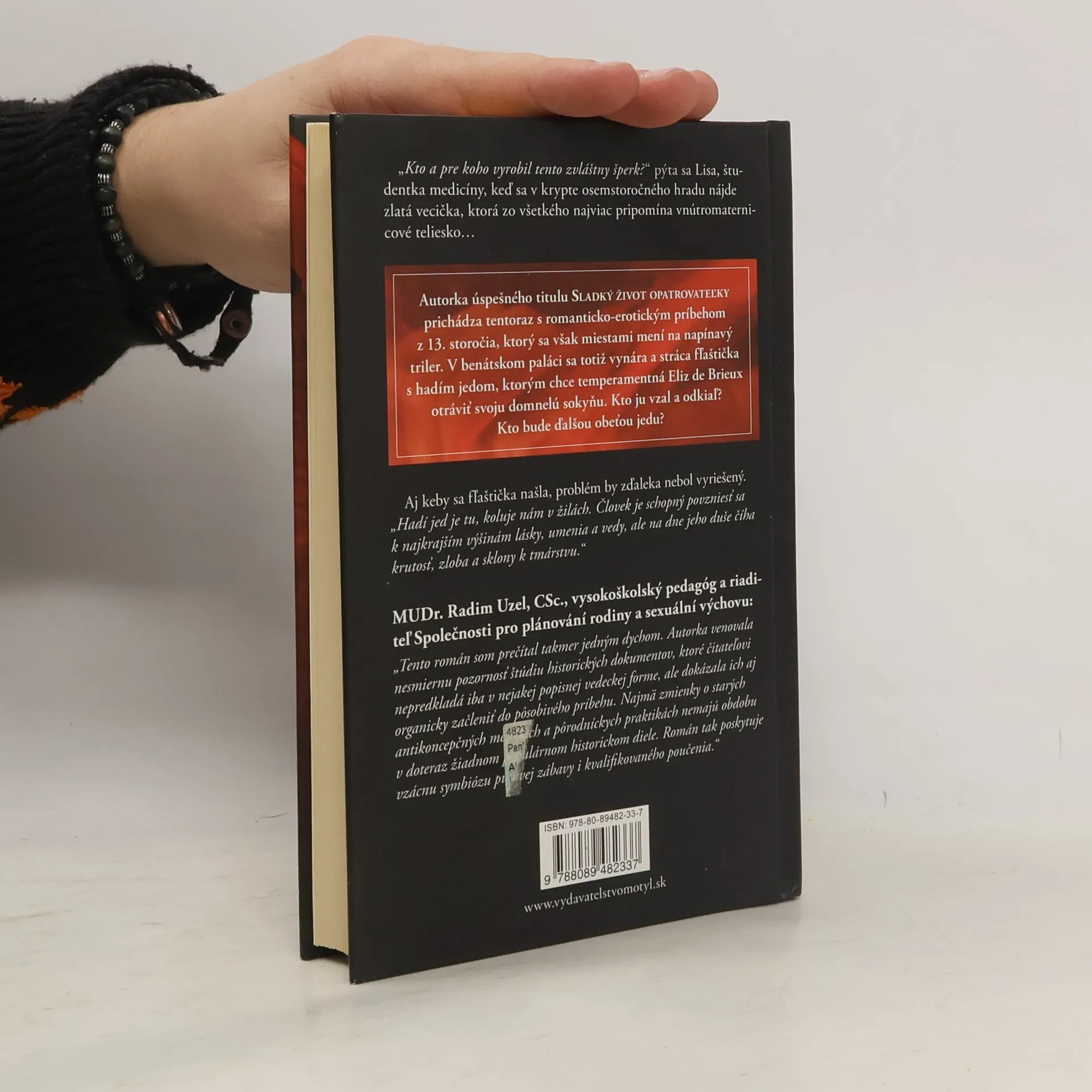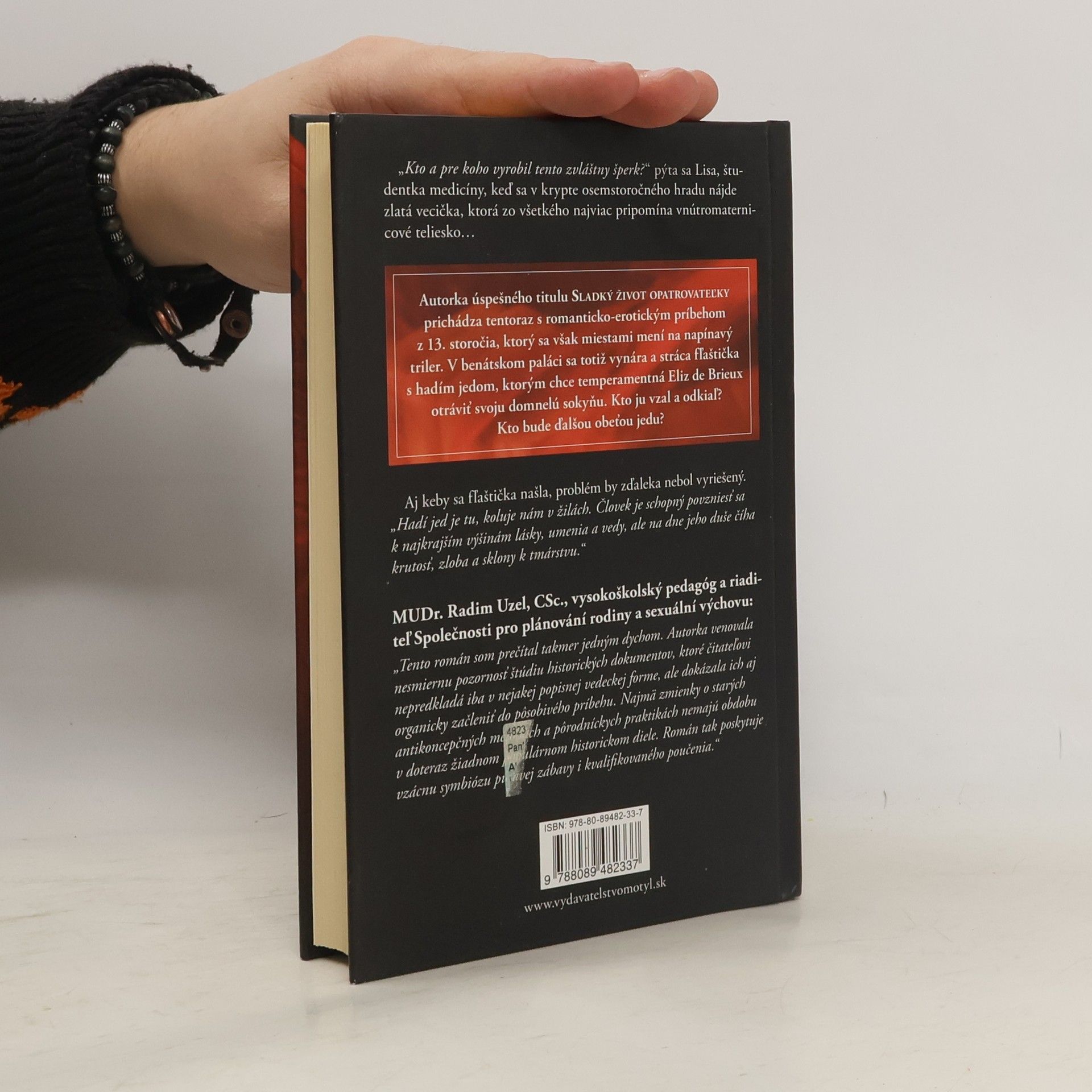 V benátskom paláci sa totiž vynára a stráca fľaštička s hadím jedom, ktorým chce temperamentná Eliz de Brieux otráviť svoju domnelú sokyňu. Kto ju vzal a odkiaľ? Kto bude ďalšou obeťou jedu?Kto a pre koho vyrobil tento zvláštny šperk? pýta sa Lisa, študentka medicíny, keď sa v krypte osemstoročného hradu nájde zlatá vecička, ktorá zo všetkého najviac pripomína vnútromaternicové teliesko..