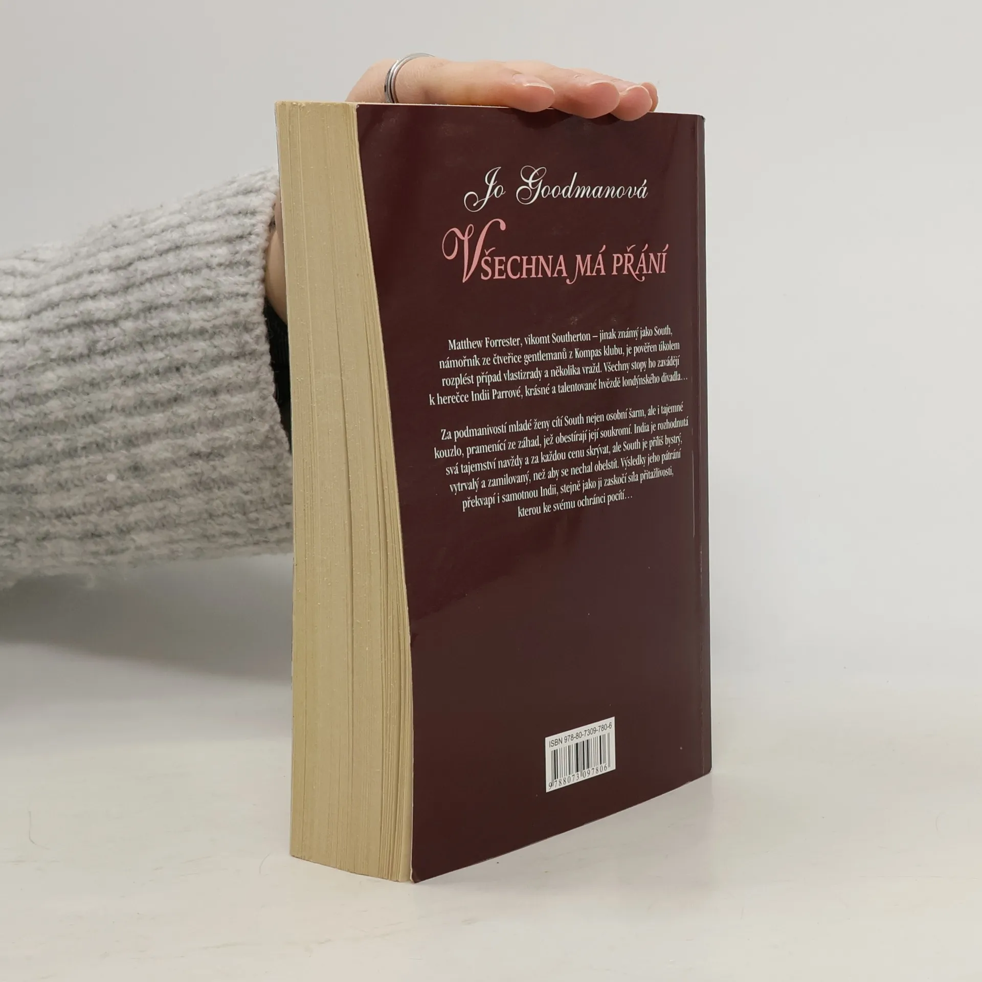 Série Kompas klub - 2. díl Matthew Forrester, vikomt Southerton - jinak známý jako South, námořník ze čtveřice gentlemanů z Kompas klubu, je pověřen úkolem rozplést případ vlastizrady a několika vražd. Všechny stopy ho závadějí k herečce Indii Parrové, krásné a talentované hvězdě londýnského divadla... Za podmanivostí mladé ženy cítí South nejen osobní šarm, ale i tajemné kouzlo, pramenící ze záhad, jež obestírají její soukromí. India je rozhodnutá své tajemství navždy a za každou cenu skrývat...