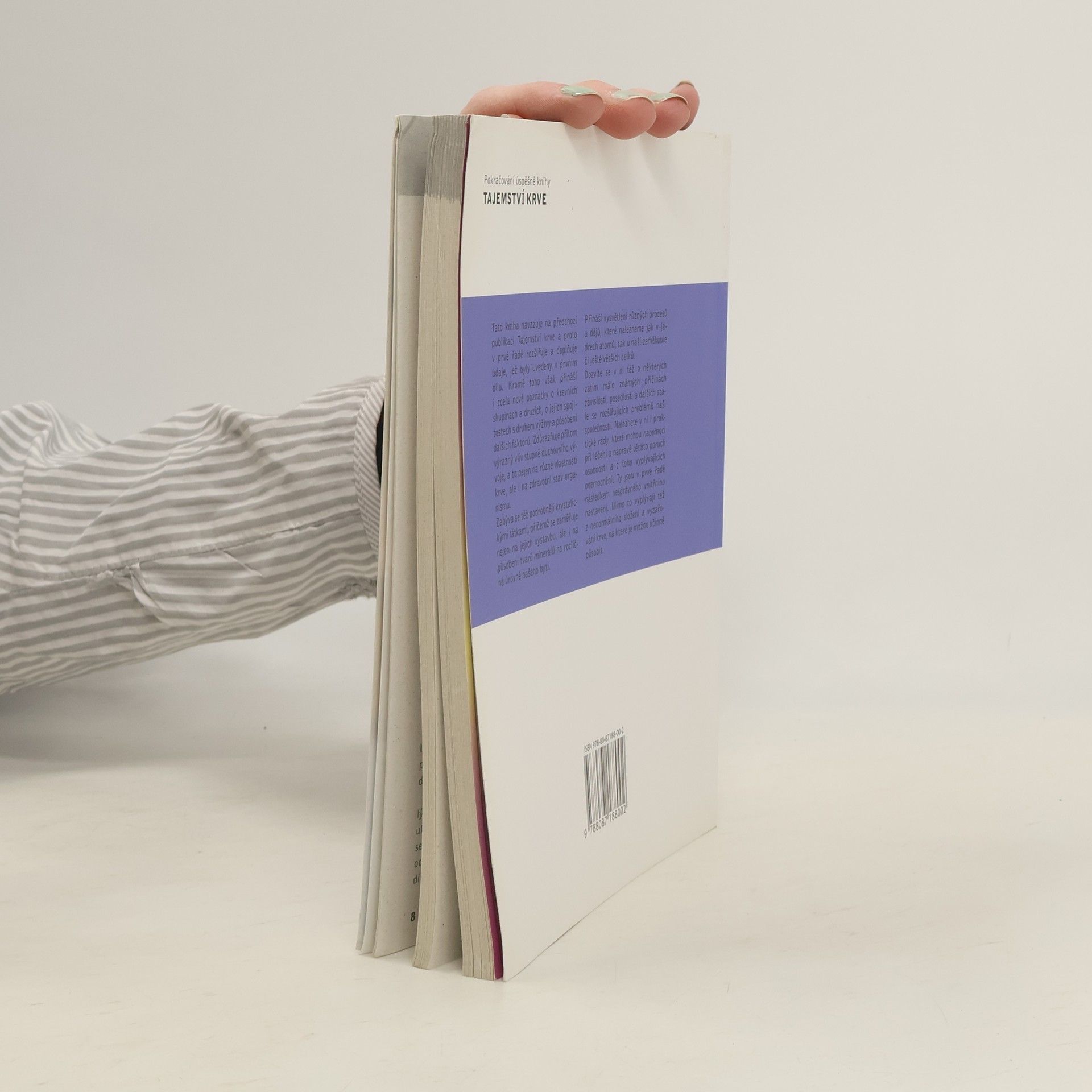 Navazuje na předchozí publikaci Tajemství krve a proto v prvé řadě rozšiřuje a doplňuje v ní uvedené údaje. Kromě toho přináší zcela nové poznatky o krevních skupinách a druzích, o jejich spojitostech s druhem výživy a působení dalších faktorů. Zdůrazňuje přitom výrazný vliv stupně duchovního vývoje, a to nejen na různé vlastnosti krve, ale i na zdravotní stav organismu. Zabývá se také krystalickými látkami, přičemž se zaměřuje nejen na jejich výstavbu, ale i na působení tvarů minerálů na rozličné úrovně našeho bytí. Dozvíte se v ní též o některých zatím málo známých příčinách závislostí, posedlosti a dalších stále se rozšiřujících problémů naší společnosti. Naleznete v ní i praktické rady, které mohou napomoci při léčení a nápravě těchto poruch osobnosti a z toho vyplývajících onemocnění.