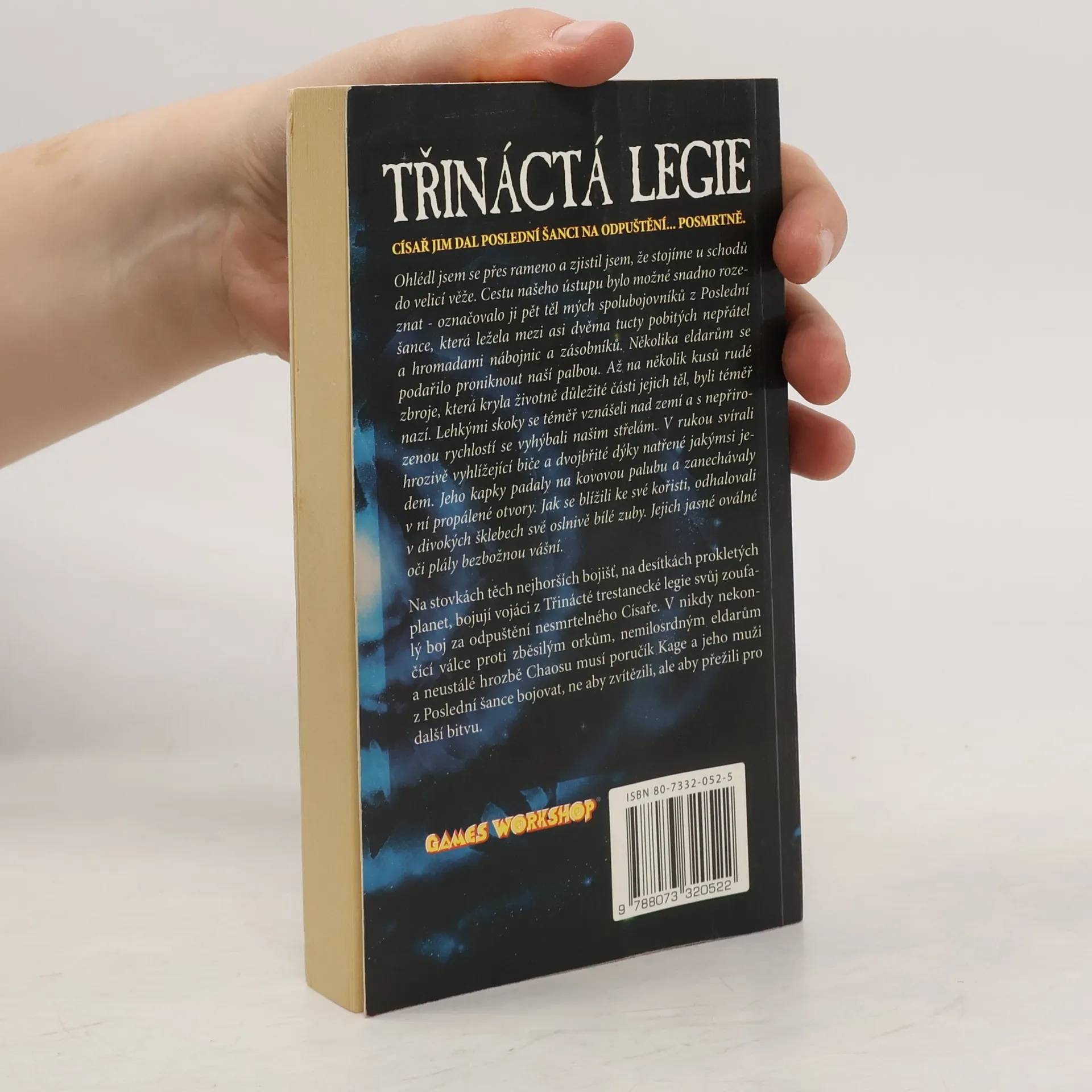 První kniha série Poslední šance odehrávající se v temném světě vzdálené budoucnosti Warhammer 40 000. Císař jim dal poslední šanci na odpuštění… posmrtně. Na stovkách těch nejhorších bojišť na desítkách prokletých planetách bojují vojáci z Třinácté trestanecké legie svůj zoufalý boj za odpuštění nesmrtelného Císaře. V nikdy nekončící válce proti zběsilým orkům, nemilosrdným eldarům a neustálé hrozbě Chaosu musí poručík Kage a jeho muži z Poslední šance bojovat, ne aby zvítězili, ale aby přežili pro další bitvu.