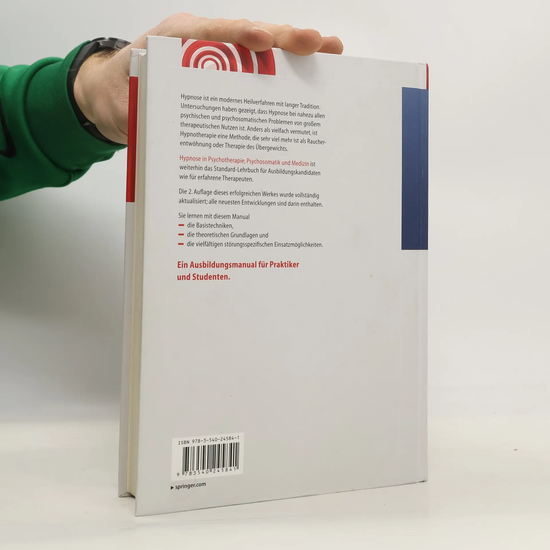 Die Hypnose ist ein modernes Heilverfahren mit langer Tradition. Untersuchungen haben gezeigt, dass Hypnose bei nahezu allen psychischen und psychosomatischen Problemen von großem therapeutischem Nutzen ist. Dieses Manual vermittelt die theoretischen Grundlagen, alle Basistechniken sowie die vielfältigen störungsspezifischen Einsatzmöglichkeiten. Die 2. Auflage wurde den neuesten Entwicklungen entsprechend vollständig aktualisiert. Das Buch richtet sich an Ausbildungskandidaten wie auch an erfahrene Therapeuten.