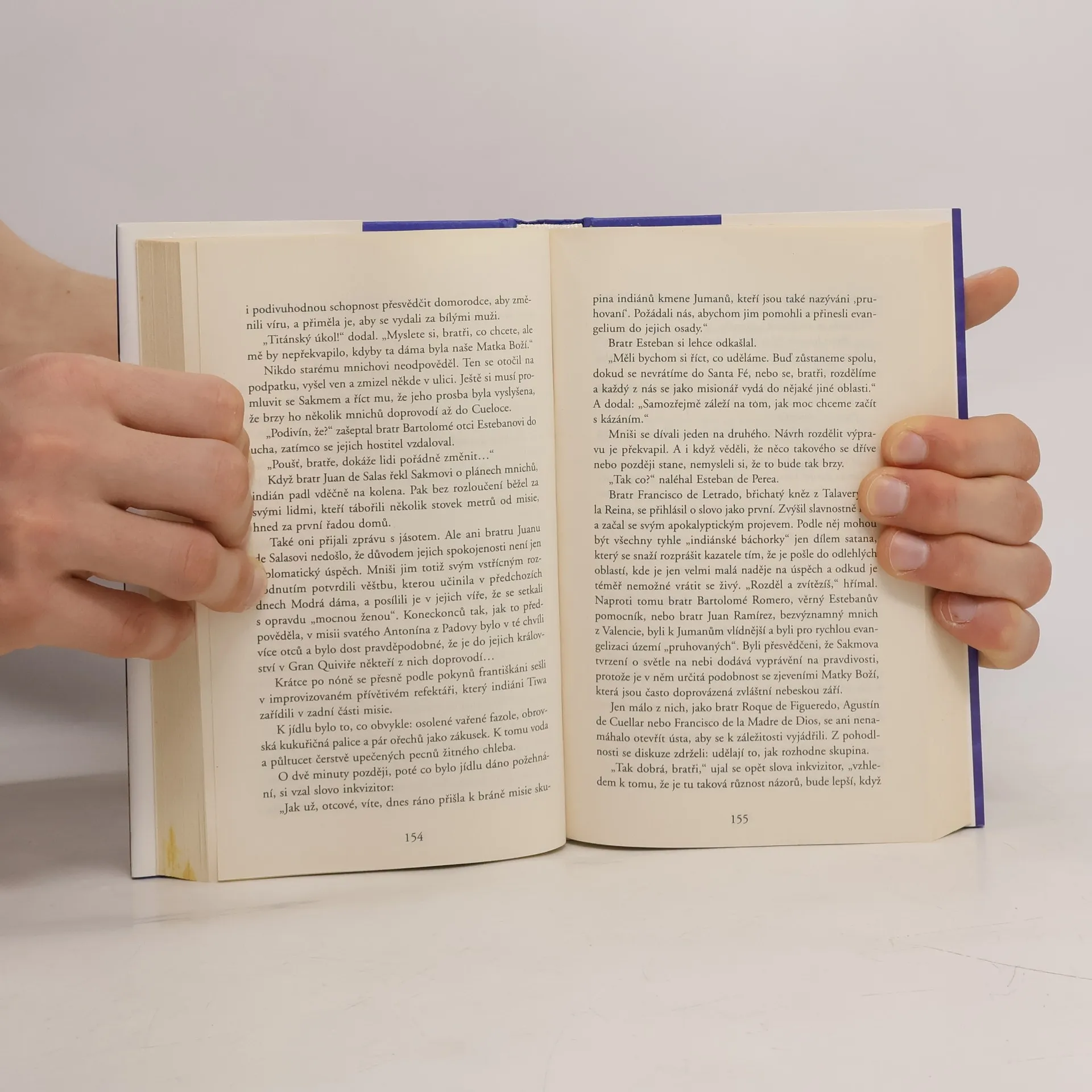 Podle starých indiánských legend se vyvolenému lidu zjevovala Modrá dáma, aby jej varovala před budoucími událostmi... Předpověděla jim například, že přijdou conquistadoři a seberou jim jejich zemi... Ve španělském městě Ágreda žila kdysi jeptiška María Jesús, která ovládala umění bilokace - tedy umění být zároveň na dvou místech. María Jesús svá tvrzení o tom, že navštívila Ameriku, obhájila dokonce i před svatou inkvizicí. Její zvláštní schopnost upoutala o mnoho století později jednak Vatikán a pak také ministerstvo obrany USA. Nejdůležitější členové vatikánského týmu se mezi sebou znali jen pod přezdívkami - což byla jména evangelistů. Jeden z nich, svatý Lukáš, dostal znepokojivý dopis, zvoucí jej neodkladně do Říma... Že by se Svatému oficiu nelíbil rozhovor, který nedávno poskytl novinám...? A po stopách Modré dámy se vydává i novinář Txema Jiménez, kterého její příběh fascinuje. Sierrovi se podařilo napsat strhující román. Děj se odvíjí z různých koutů světa v několika časových rovinách, jednotlivé nitky se spřádají a vytvářejí tajemnou mozaiku příběhu, z něhož čtenáře mrazí...
