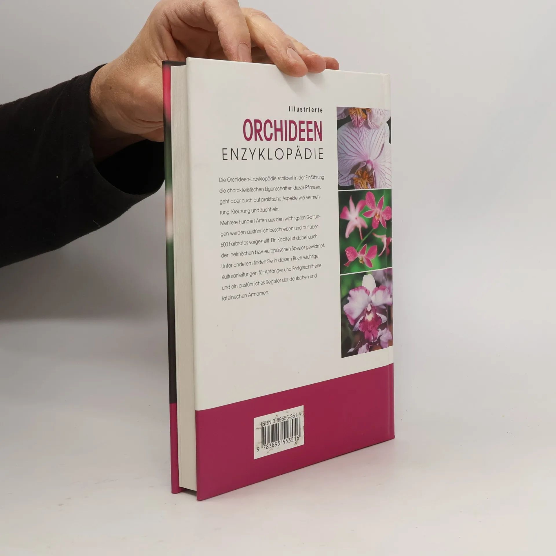 Die Orchideen-Enzyklopädie schildert in der Einführung die charakteristischen Eigenschaften dieser Pflanzen, geht aber auch auf praktische Aspekte wie Vermehrung, Kreuzung und Zucht ein. Mehrere hundert Arten aus den wichtigsten Gattungen werden ausführlich beschrieben und auf über 600 Farbfotos vorgestellt. Ein Kapitel ist dabei auch den heimischen bzw. europäischen Spezies gewidmet. Unter anderem finden Sie in diesem Buch wichtige Kulturanleitungen für Anfänger und Fortgeschrittene und ein ausführliches Register der deutschen und lateinischen Artnamen.