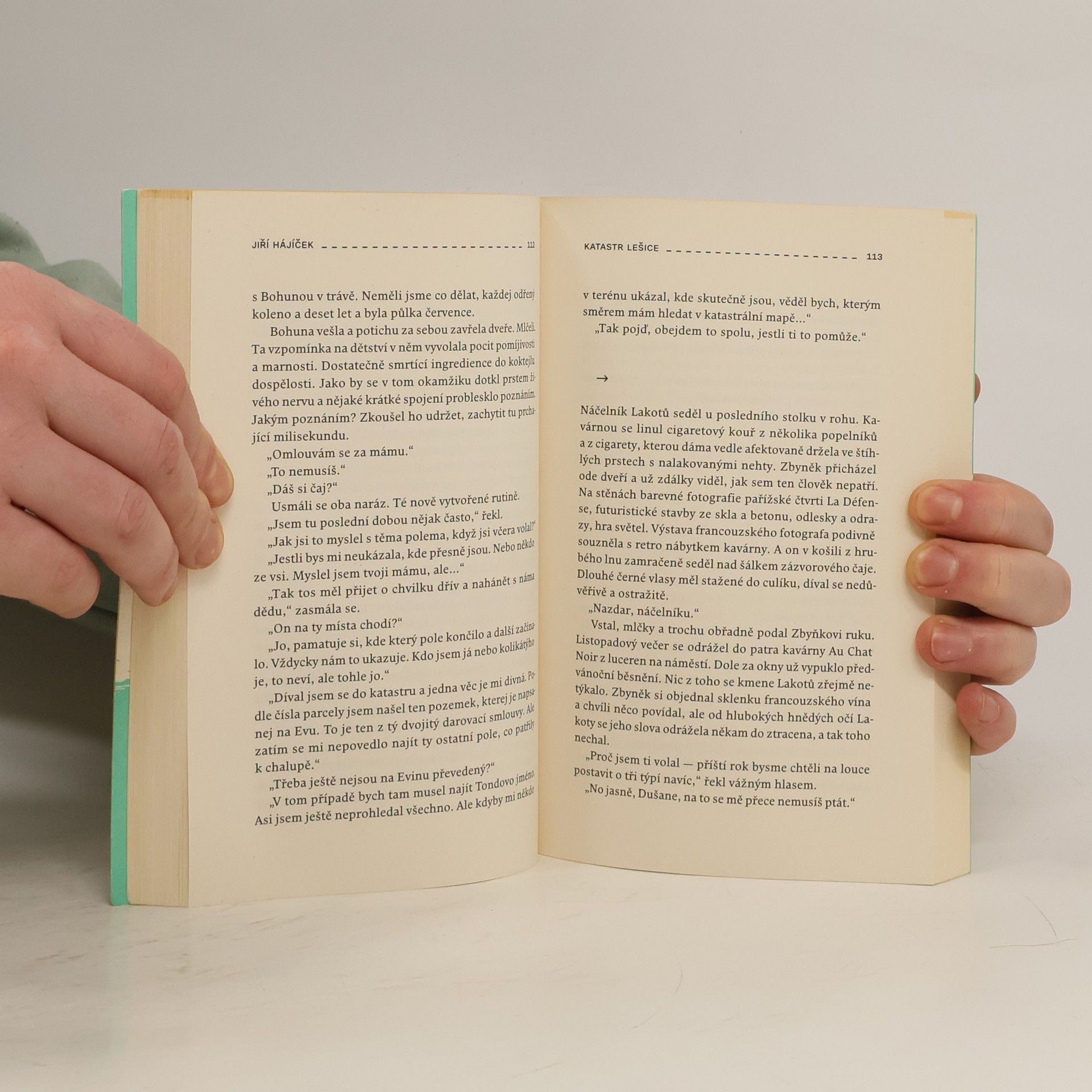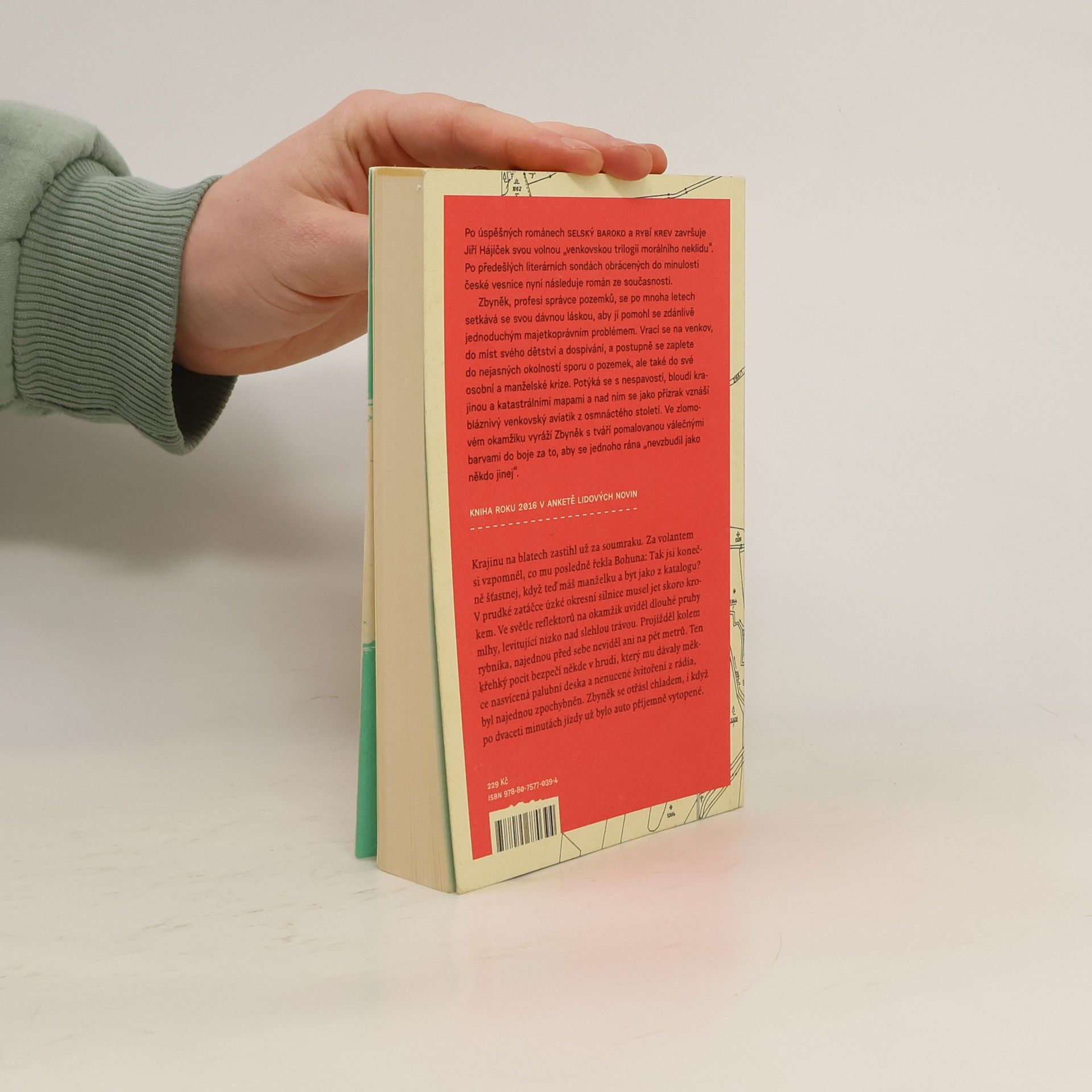 Po úspěšných románech Selský baroko a Rybí krev završuje Jiří Hájíček svou volnou „venkovskou trilogii morálního neklidu“. Předešlé literární sondy obrácené do minulosti české vesnice následuje nyní román ze současnosti. Opět silný příběh, v němž kromě lidí tentokrát hrají důležitou roli pozemky — zděděná pole a spory kolem jejich vlastnictví. Venkovská krajina jihočeských blat je vůbec v textu silně přítomna a kromě jedinečné atmosféry dodává příběhu i historický kontext a také nepřímo vstupuje do osudů hlavních postav. Zbyněk, profesí správce pozemků, se po mnoha letech setkává se svou dávnou láskou, aby jí pomohl se zdánlivě jednoduchým majetkoprávním problémem. Vrací se na venkov, na místa svého dětství a dospívání, a zamotává se do nejasných okolností pozemkového sporu, ale také do osobní a manželské krize. Potýká se s nespavostí, bloudí krajinou a katastrálními mapami a nad ním se jako přízrak vznáší bláznivý venkovský aviatik z osmnáctého století. Ve zlomovém okamžiku jde Zbyněk s tváří pomalovanou válečnými barvami do boje. Za to, co považuje za správné, za sny dětství a „aby se jednoho rána neprobudil jako někdo jiný“.