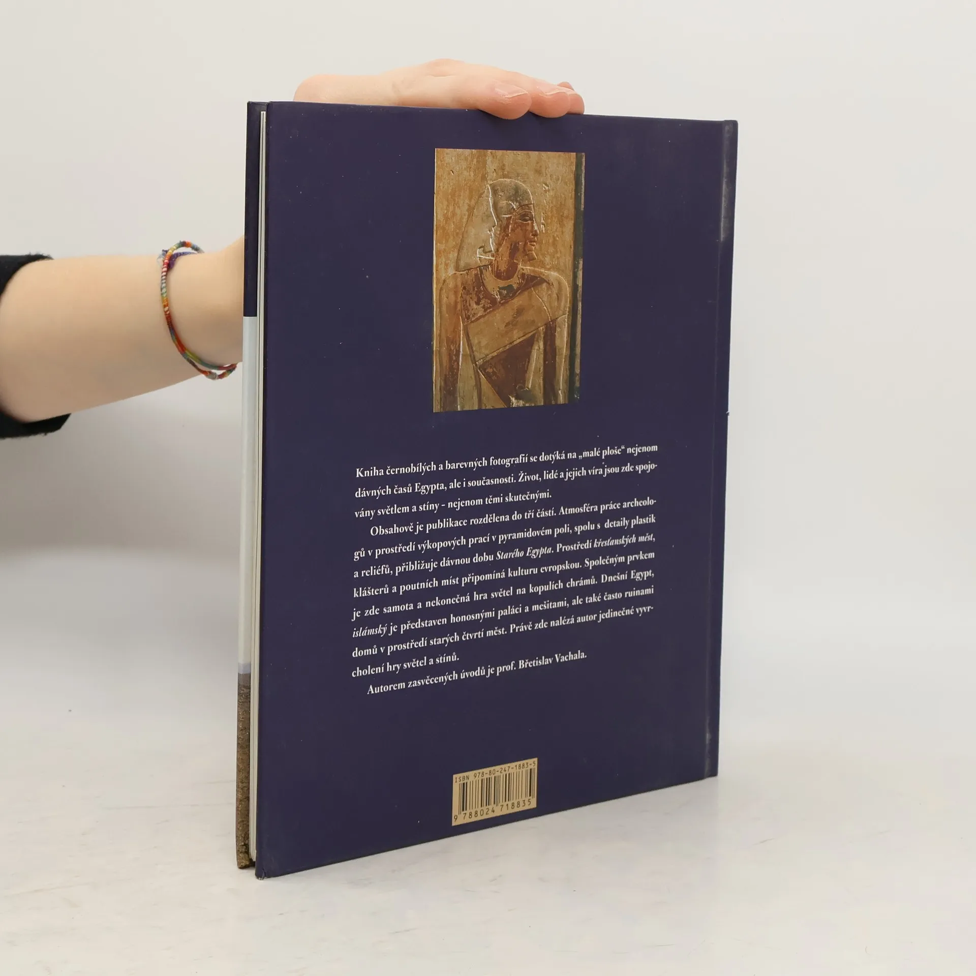 Výpravná fotografická kniha připomíná s nostalgií činnost autora při expedicích egyptologického ústavu. Fotografie jsou volně řazeny do tří cyklů. V první části, která je věnována starému Egyptu, jsou převážně záběry z práce archeologů. Druhá část vás provede prostředím křesťanských měst, klášterů a poutních míst, která svou atmosférou často připomíná kulturu evropskou. Poslední díl knihy ukazuje dnešní islámský Egypt, honosné paláce, mešity, ale také ruiny v prostředí starých čtvrtí vytvářející jedinečné scény.