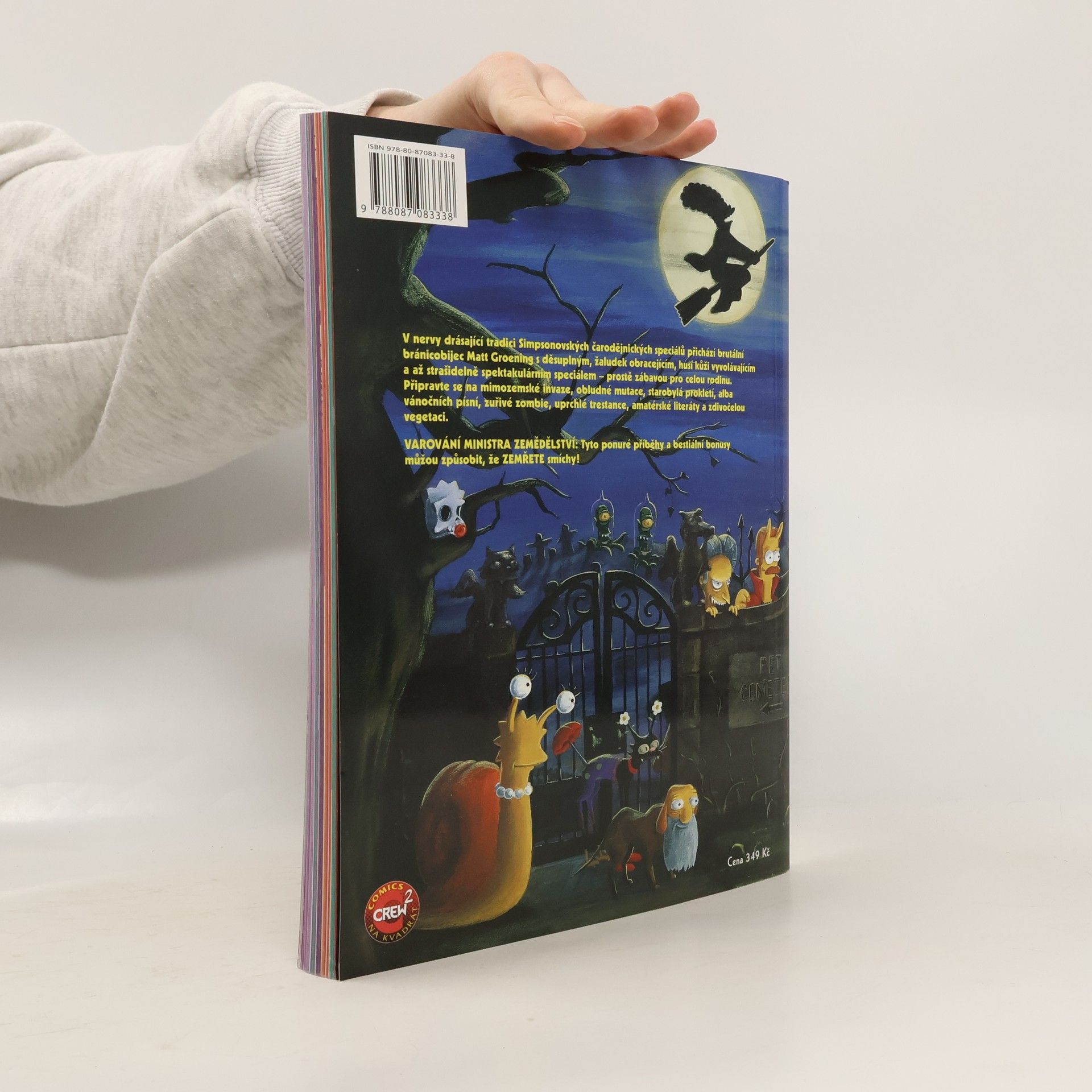 V nervy drásající tradici Simpsonovských čarodějnických speciálů přichází brutální bránicobijec Matt Groening s děsuplným, žaludek obracejícím, husí kůži vyvolávajícím a až strašidelně spektaktulárním speciálem – prostě zábavou pro celou rodinu. Připravte se na mimozemské invaze, obludné mutace, starobylá prokletí, alba vánočních písní, zuřivé zombie, uprchlé trestance, amatérské literáty a zdivočelou vegetaci. Příběhy: Levák Blob! - Paul Dini, Bill Morrison, Tim Bavington Ségra s ďáblem v těle - Peter Bagge, Stephanie Gladden, Tim Bavington Imigrace zlodějů těl! - Evan Dorkin, Bill Morrison, Stephanie Gladden, Phil Ortiz Říkejte mi Homer - Jeff Smith, Stephanie Gladden, Bill Morrison Bartovi lidé - James Robinson, Chris Roman, Bill Morrison Homer ještě nevečeřel - Mike Allred, Luis Escobar, Bill Morrison